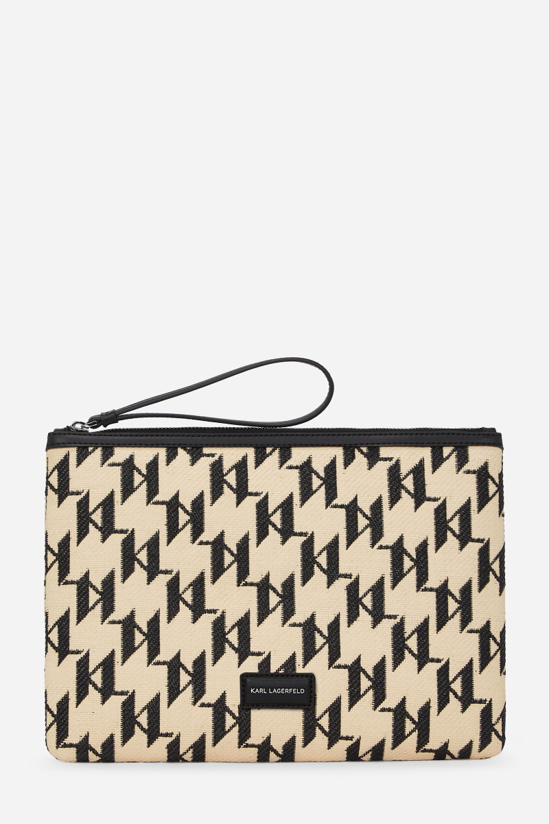 PÚZDRO KARL LAGERFELD K/ESSENTIAL RAFFIA POUCH MN MONOGRAM BLACK NATURAL