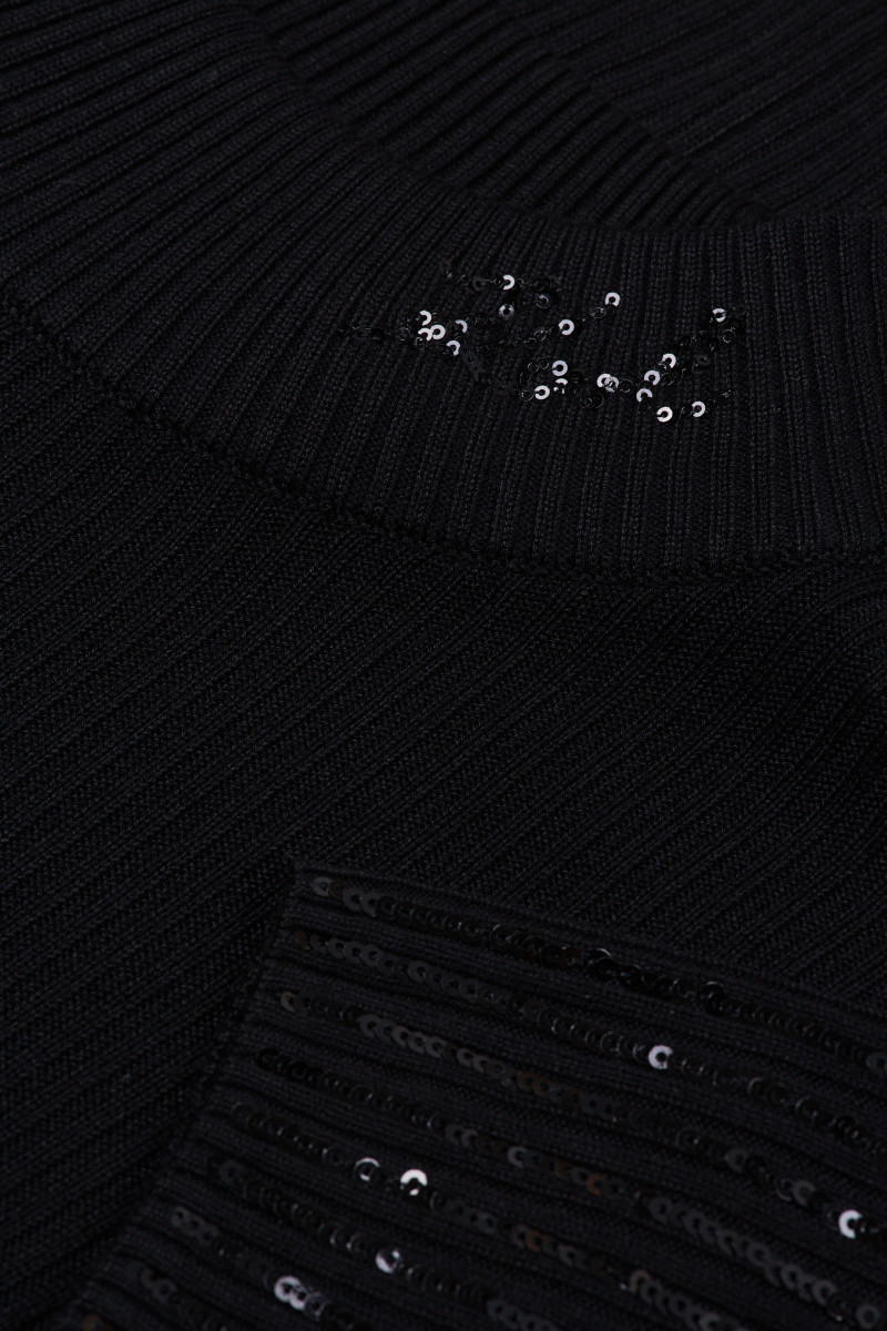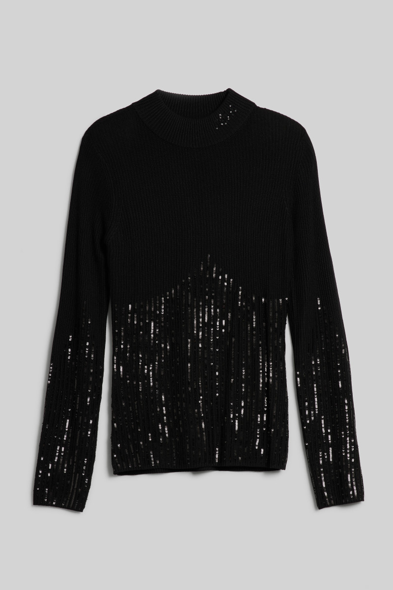 Dámsky rolák s dlhým rukávom. Trblietavý kúsok je vyrobený z neodolateľne mäkkej viskózovej zmesi a na spodnej časti ho zdobia tonálne flitre. Tento úplet v priliehavom strihu je zdobený logom Karl na vyvýšenom stojačiku. Nezameniteľne štýlový a decentný kúsok, ktorý bude ozdobou Vášho outfitu.