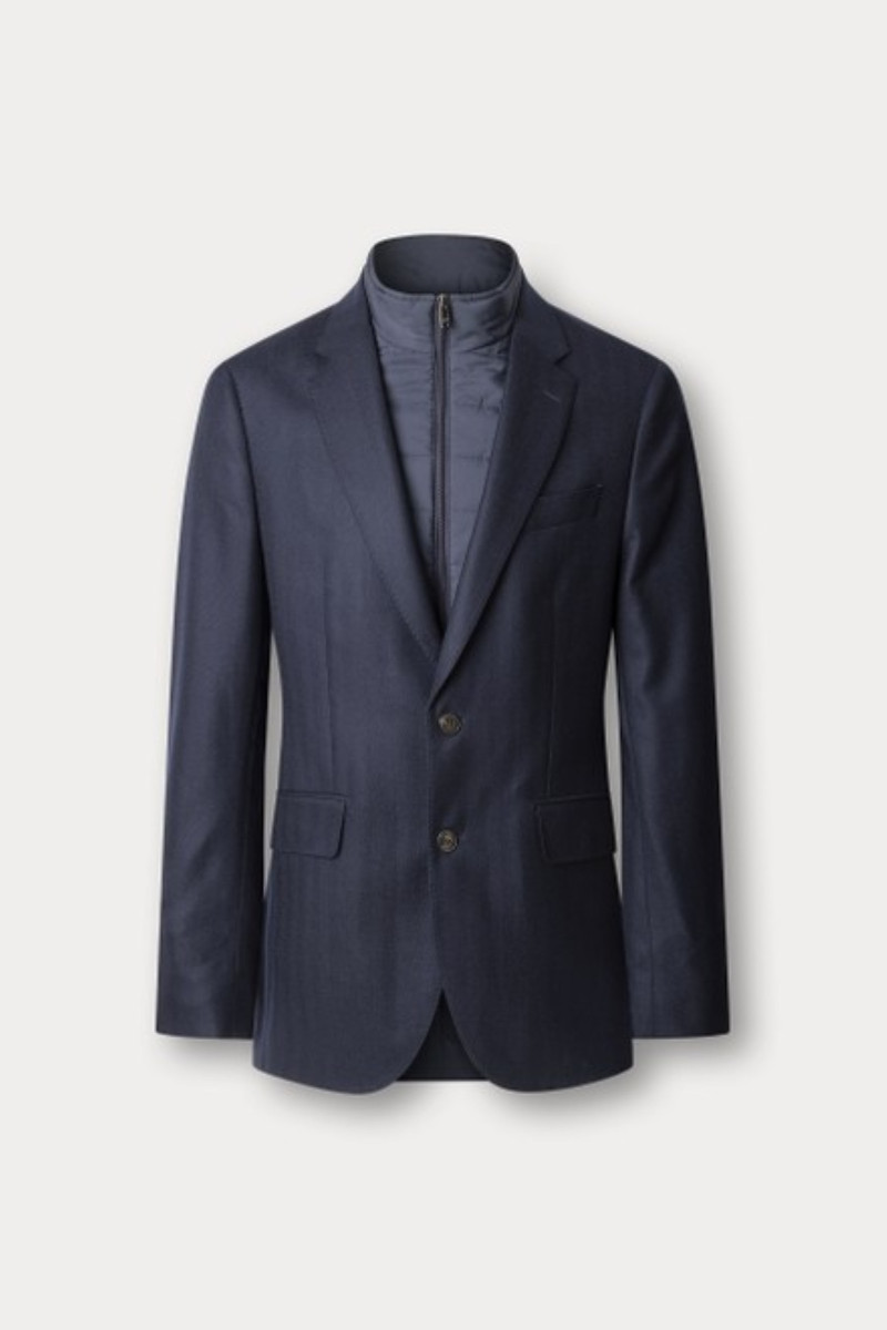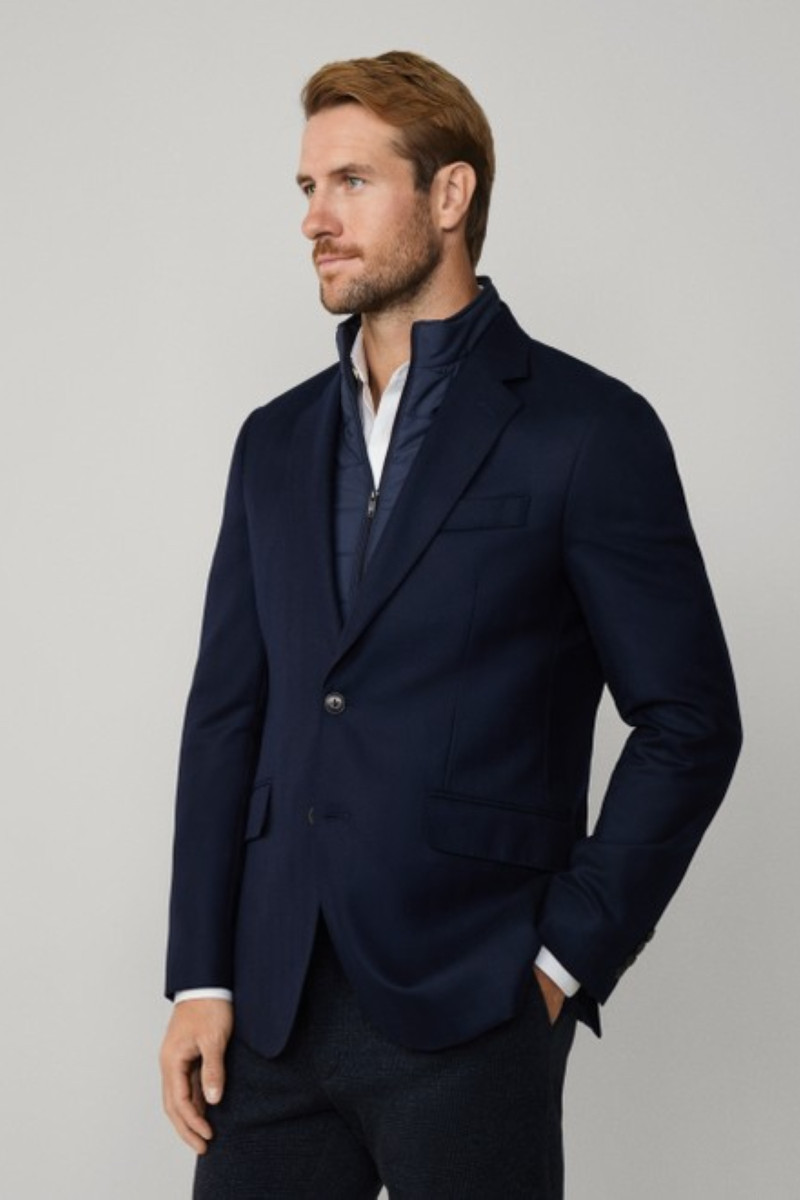 Pánske sako dokonale sediaceho strihu s odnímateľnou vložkou, ktorá tomuto nadčasovému kúsku dodáva štýlovú podobu. Jednoradové zapínanie na gombíky so štandardnou klopou a kontrastne podšitým golierom, dopĺňa vložka s krátkym stojačikom na zips a dve bočné výpustkové vrecká s chlopňou. Samozrejmosťou sú zadné rozparky, ktoré predstavujú záruku vysoko komfortného kúsku. Nekrčivú povrchovú tkaninu, ktorá je zdobená elegantným vzorom rybej kosti, tvorí 100% podiel mäkkého a príjemne hrejivého vlneného vlákna prémiovej kvality. Nechýba sofistikovane spracovaná podšívka s niekoľkými praktickými vreckami. Veľmi pohodlný artikel, ktorý sa vďaka svojej variabilite stane nenahraditeľnou súčasťou ležérnych aj formálnych outfitov.