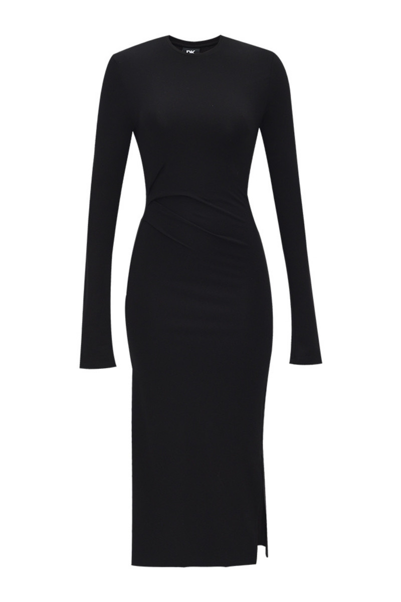 Dámske úpletové šaty v midi dĺžke. Priliehavý dizajn v jednofarebnom prevedení s dlhým rukávom a okrúhlym výstrihom dopĺňa naberaný detail na pravom boku a rozparok na ľavej strane pre perfektnú siluetu. Jemný úplet z kvalitnej viskózovej zmesi zaručuje skvelú splývavosť, ľahkosť a maximálne príjemný pocit počas nosenia. Veľmi pohodlný a nadčasový kúsok, ktorý sa stane štýlovým základom Vášho jesenného šatníka.