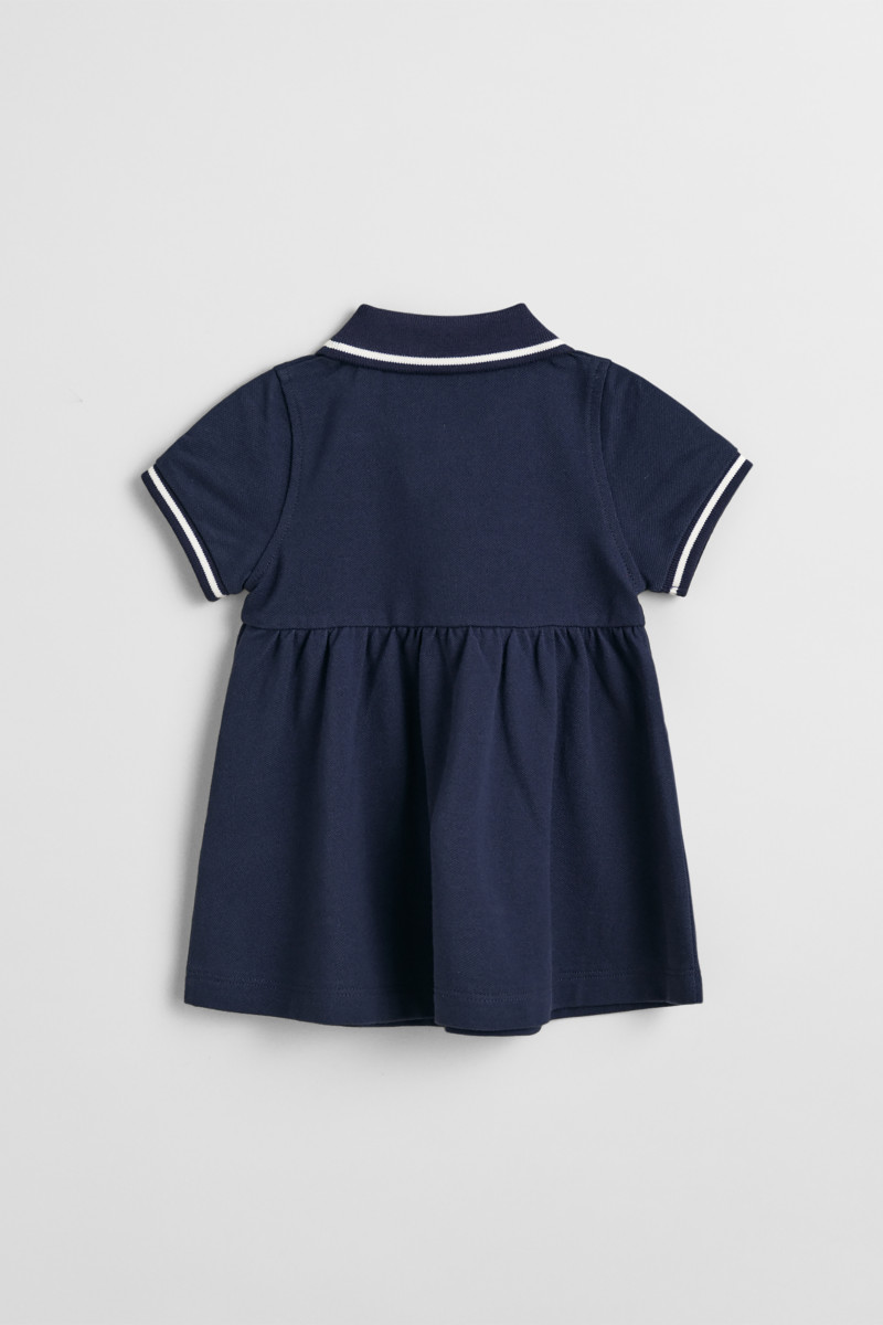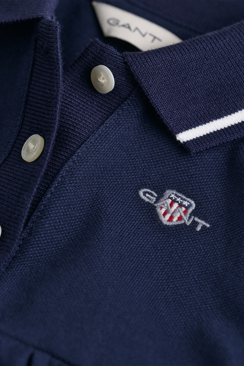 Dievčenské polo šaty z jemného piké úpletu, ktorý tvorí 100% podiel bavlneného vlákna organického pôvodu. Kontrastne lemovaný golier dopĺňa krátky rukáv s rovnako efektným detailom, riasená suknička a nohavičky s praktickým zapínaním na patentky pre jednoduchšie a rýchlejšie prebaľovanie. Nechýba ikonické logo značky Gant vyšité na hrudi. Kvalitné materiálové zloženie vyniká svojou neobyčajnou mäkkosťou a jedinečnou priedušnosťou. Kúzelne vyzerajúci kúsok, ktorý zabezpečí Vašej malej princeznej pocit pohodlia a spokojnosti počas nosenia.