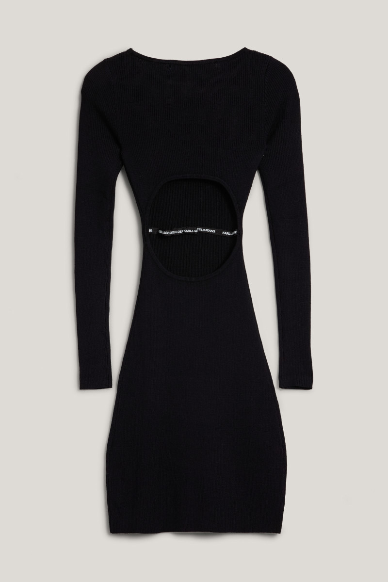 Dámske priliehavé šaty s dlhými rukávmi a zaujímavým detailom na chrbte, sú pre moderné ženy, ktoré chcú zostať štýlové. Šaty majú úzky strih, ktoré pohodlne sedia na tele a skvele padnú na každý typ postavy. Logo z kolekcie Karl Lagerfeld jeans vpredu. Materiálové zloženie zaručí splývavé a pohodlné nosenie na každý deň a strih šiat s detailami robí šaty veľmi zaujímavým a štýlovým kuskom do šatníka.
