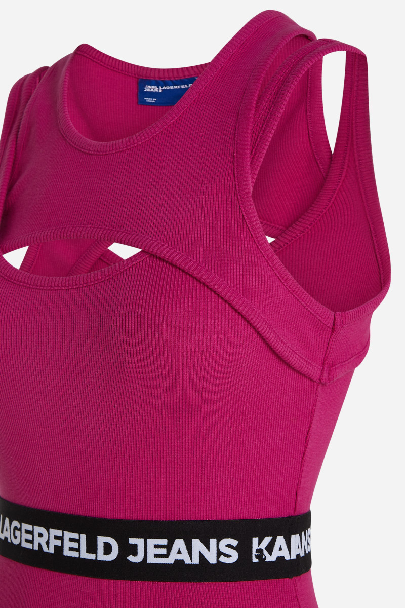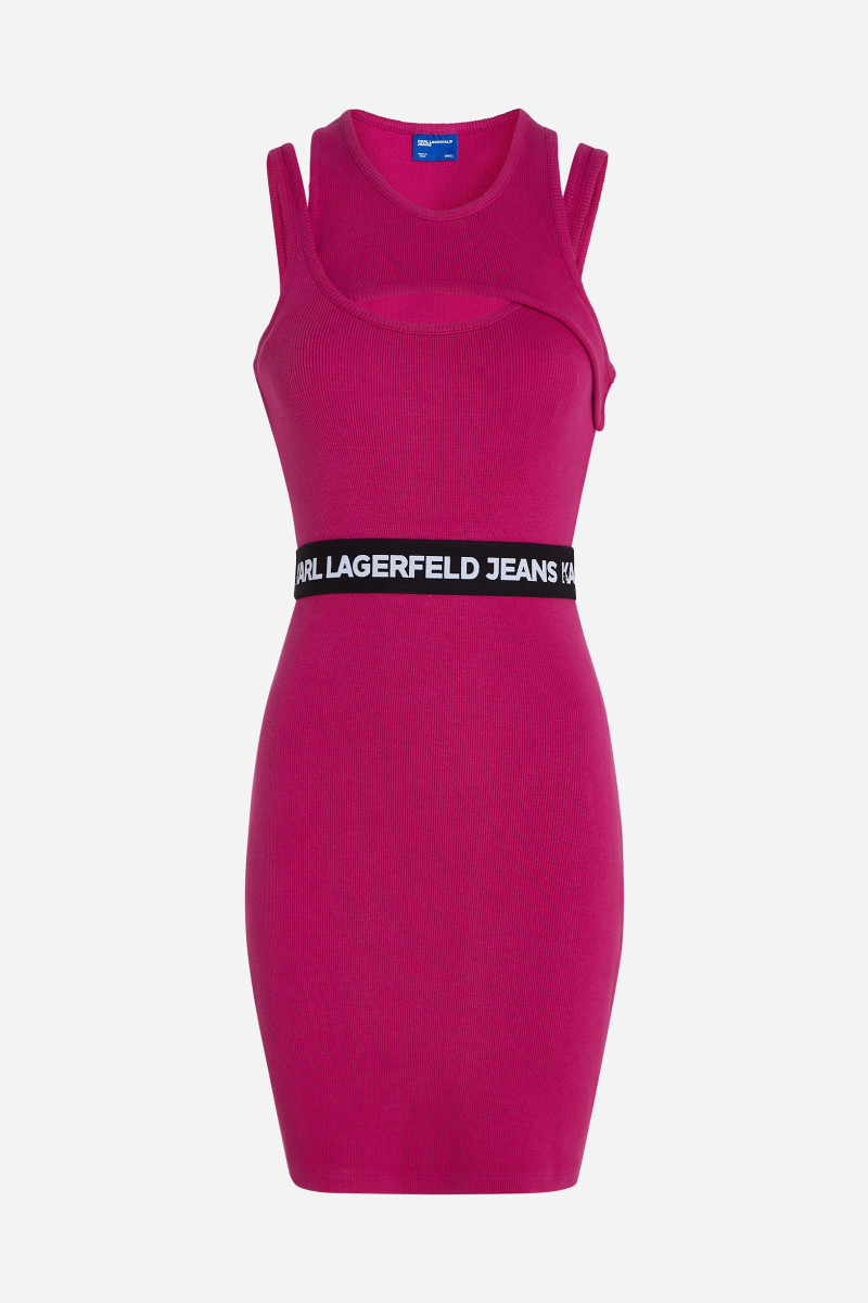 Dámske mini šaty s dvojvrstvovým výstrihom a pásom s logom Karl Lagerfeld Jeans. Vyrobené zo strečového džerseja, ktorý je nesmierne pohodlný a krásne obopína postavu. Nezameniteľne štýlový kúsok, ktorý bude ozdobou Vášho outfitu.