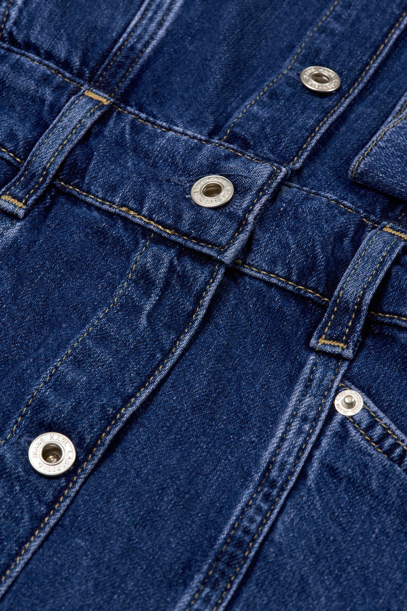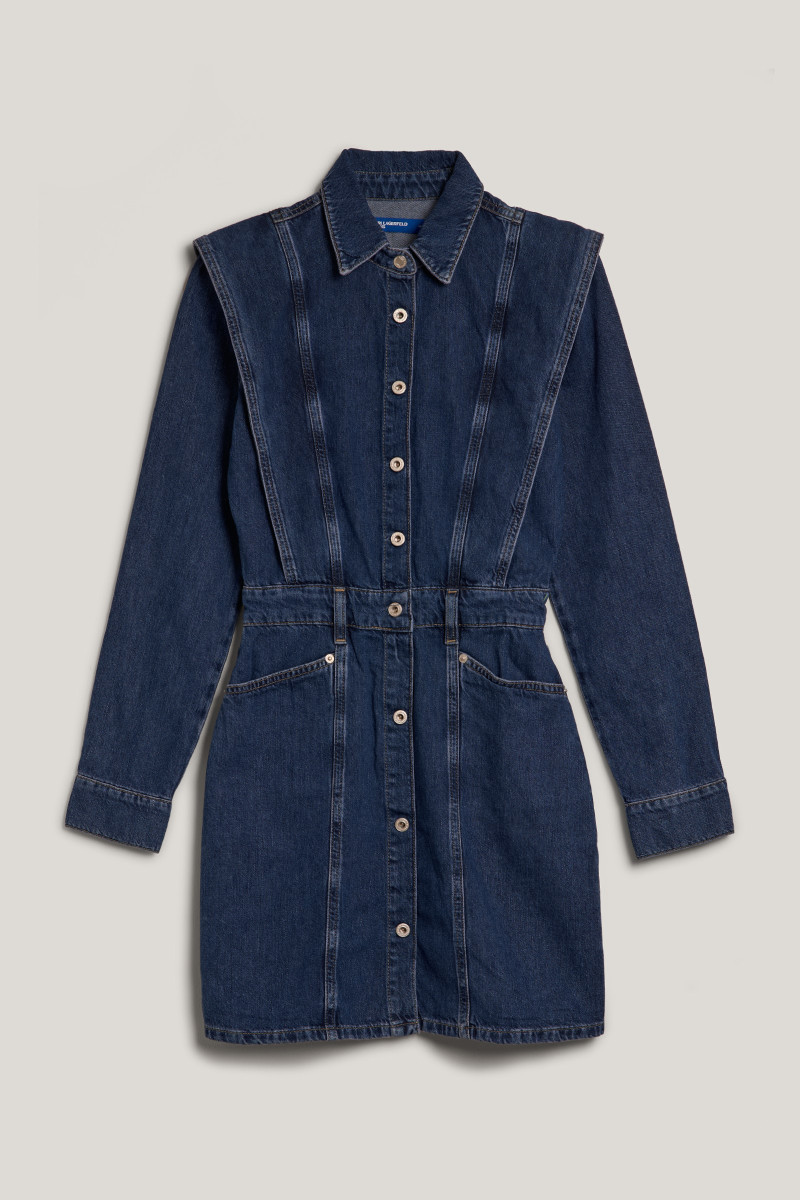 Dámske džínsové šaty s golierom a dlhým rukávom. Prešívané detaily a pútka na opasok v páse krásne tvarujú siluetu. Zapínanie na kontrastné gombíky. Dlhý rukáv ukončený manžetami s patentnými gombíkmi. Tento praktický kúsok zdobí kožený štítok Karl Lagerfeld Jeans na zadnom leme. 100% organická bavlna je zárukou maximálnej priedušnosti, pohodlia a jednoduchej údržby. Praktický a zároveň ženský veľmi rafinovaný kúsok, ktorý bude vyzerať skvele v kombinácii s krátkou bundou a teniskami.