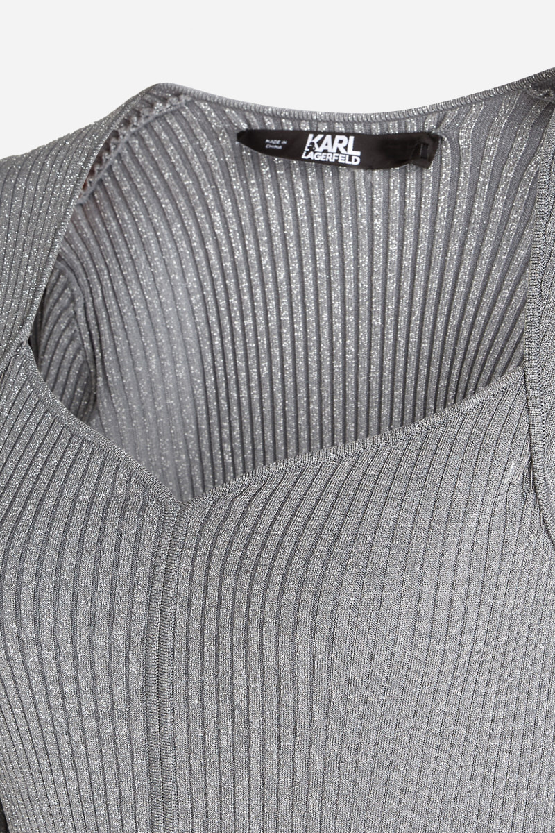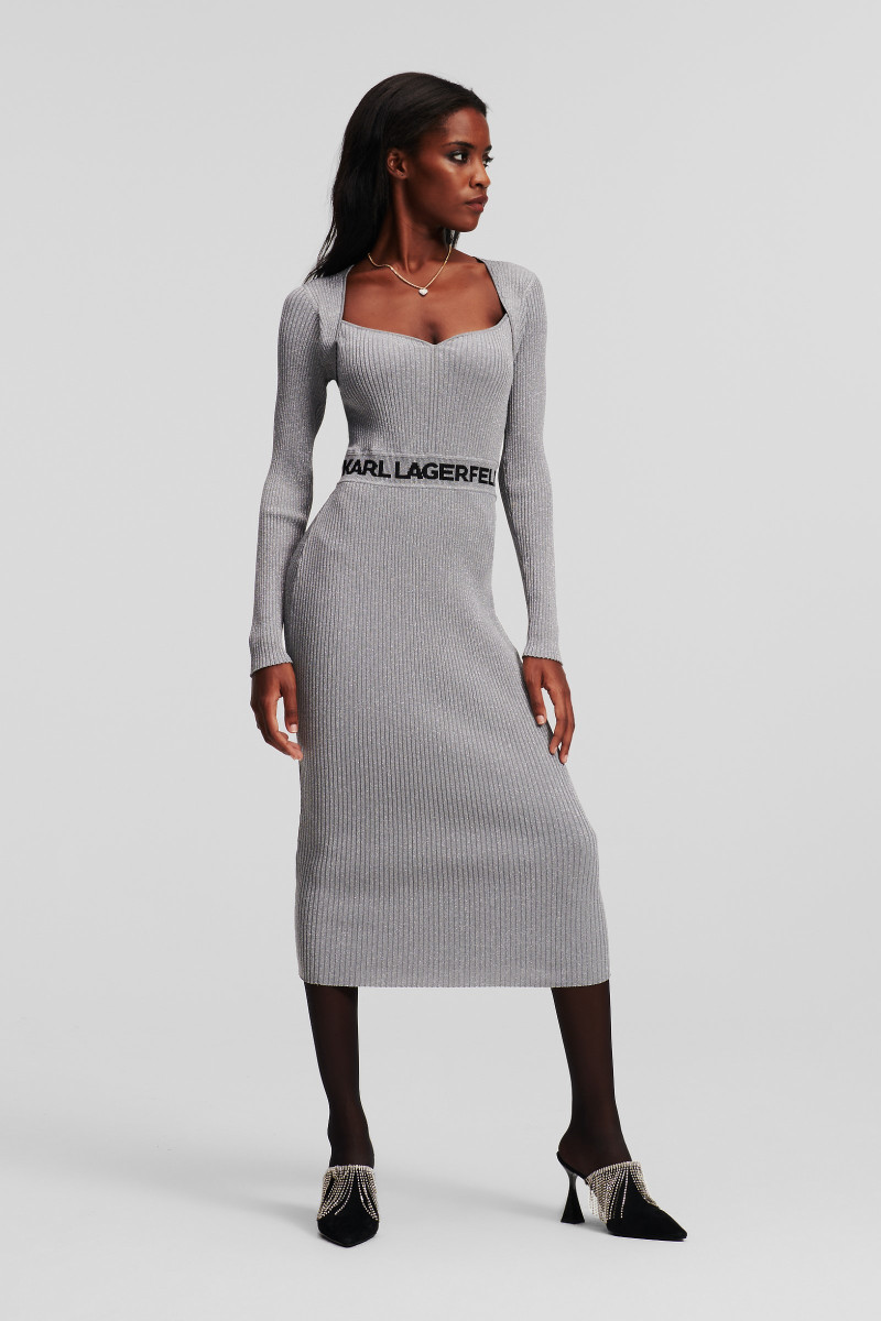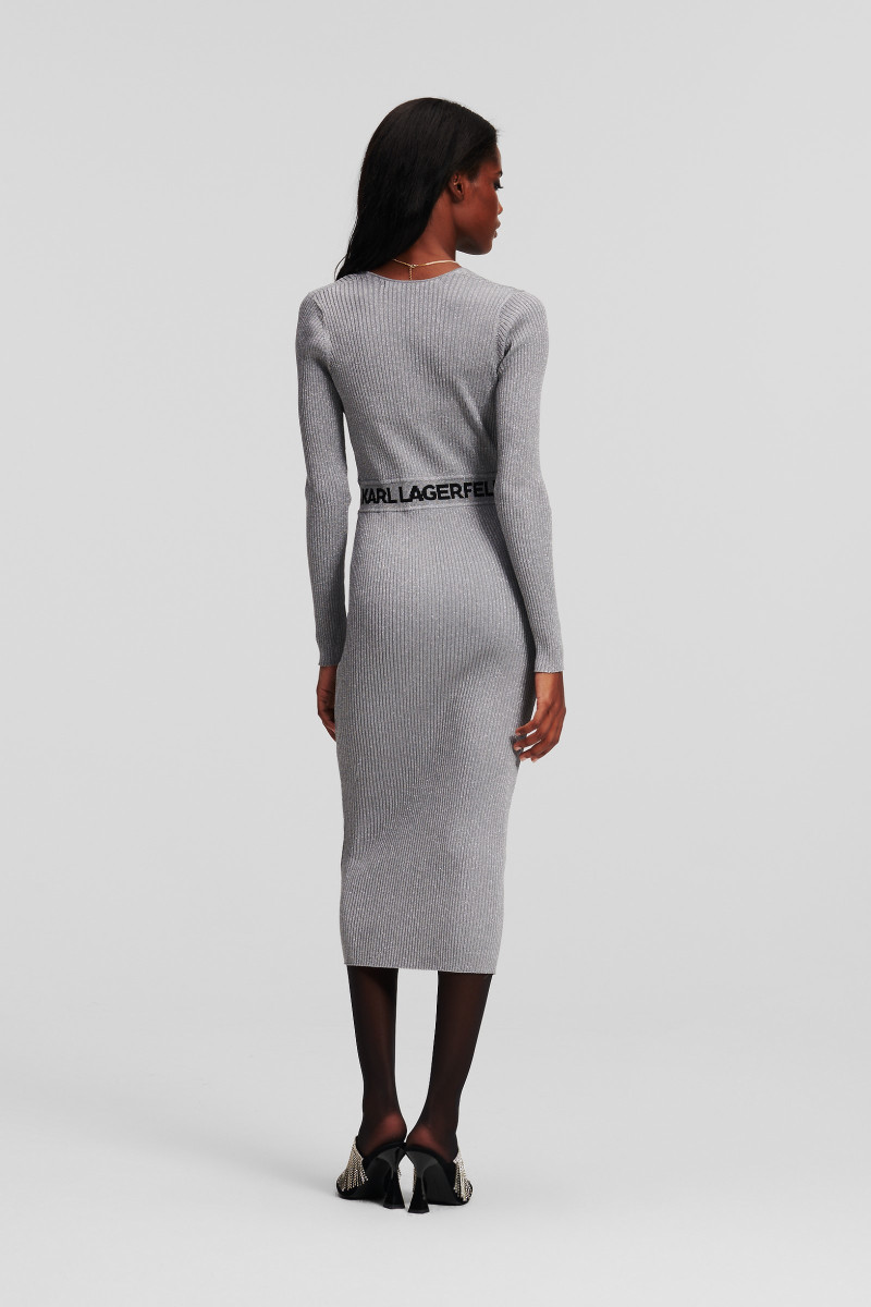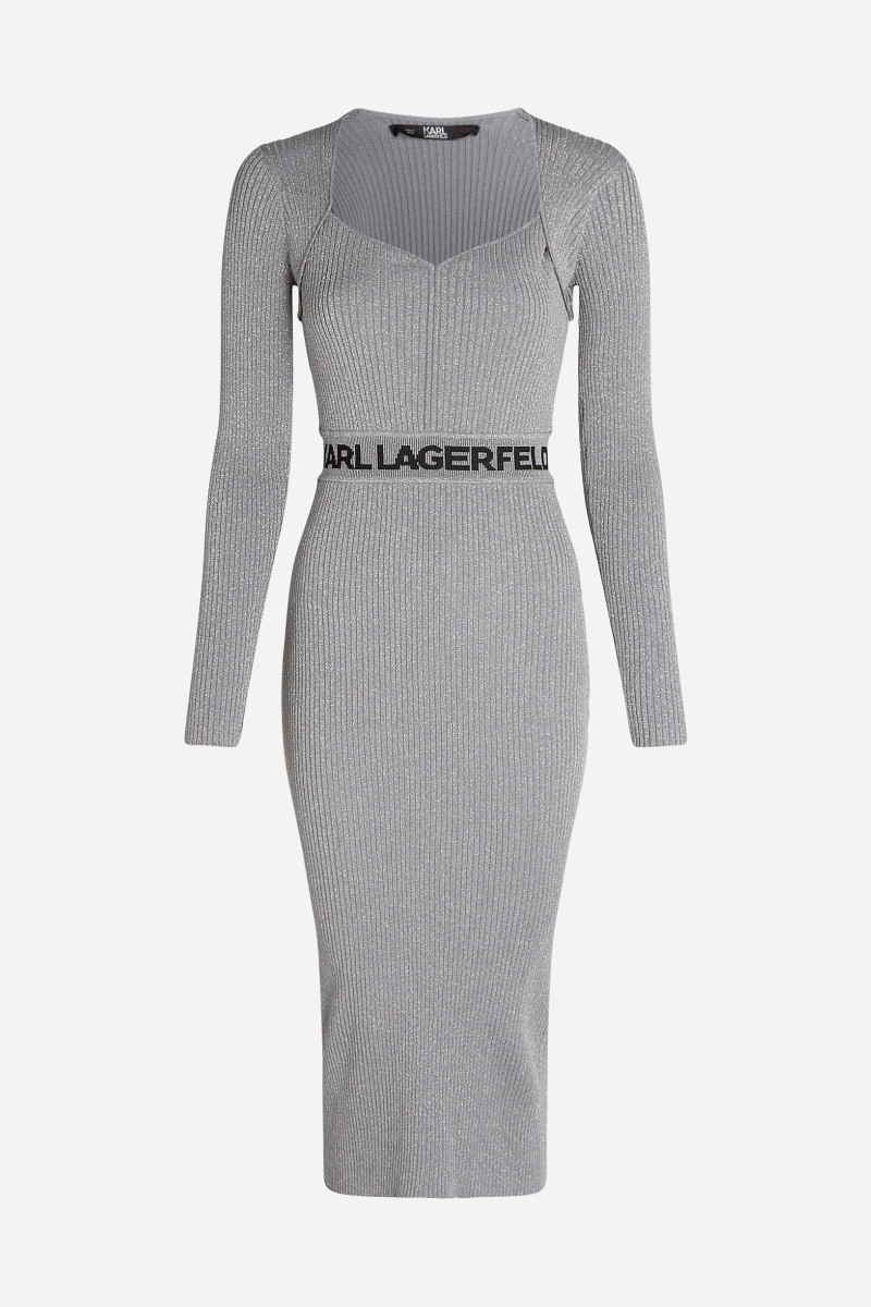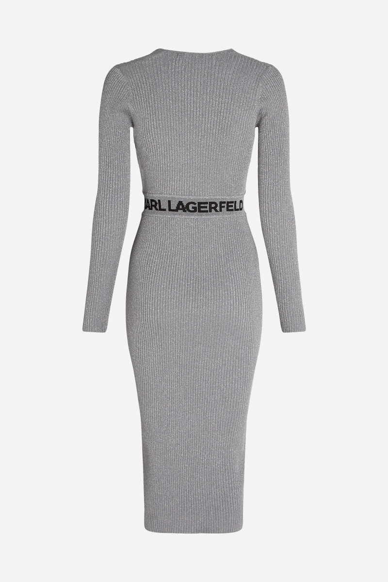ŠATY KARL LAGERFELD LSLV LUREX LOGO KNIT DRESS SILVER LUREX