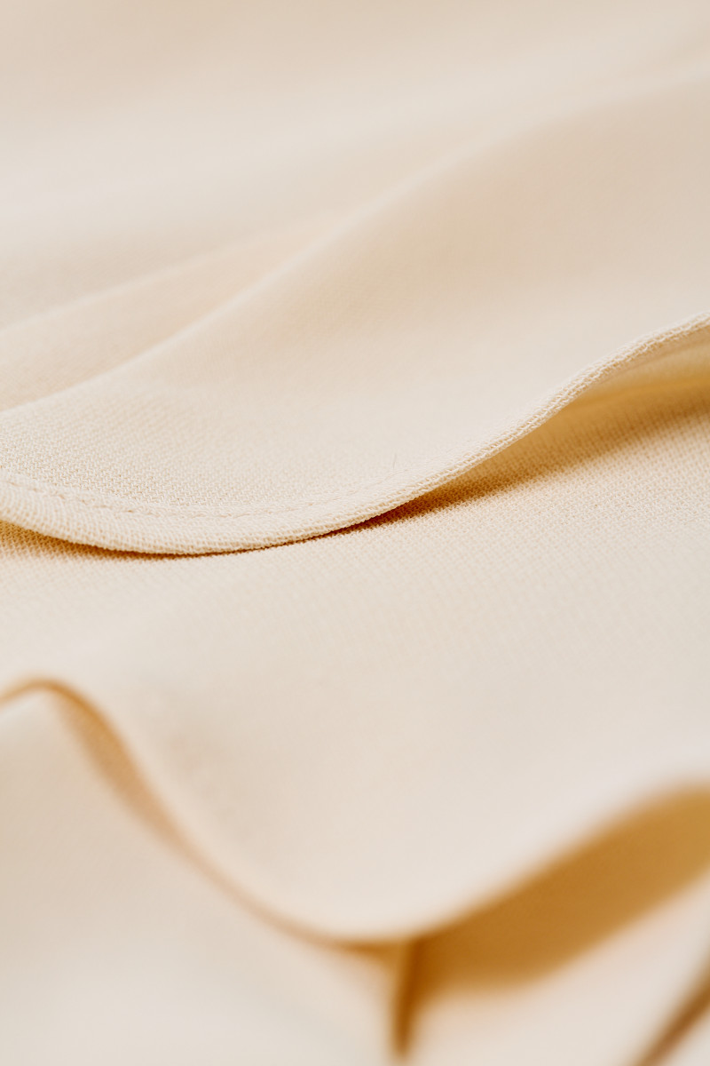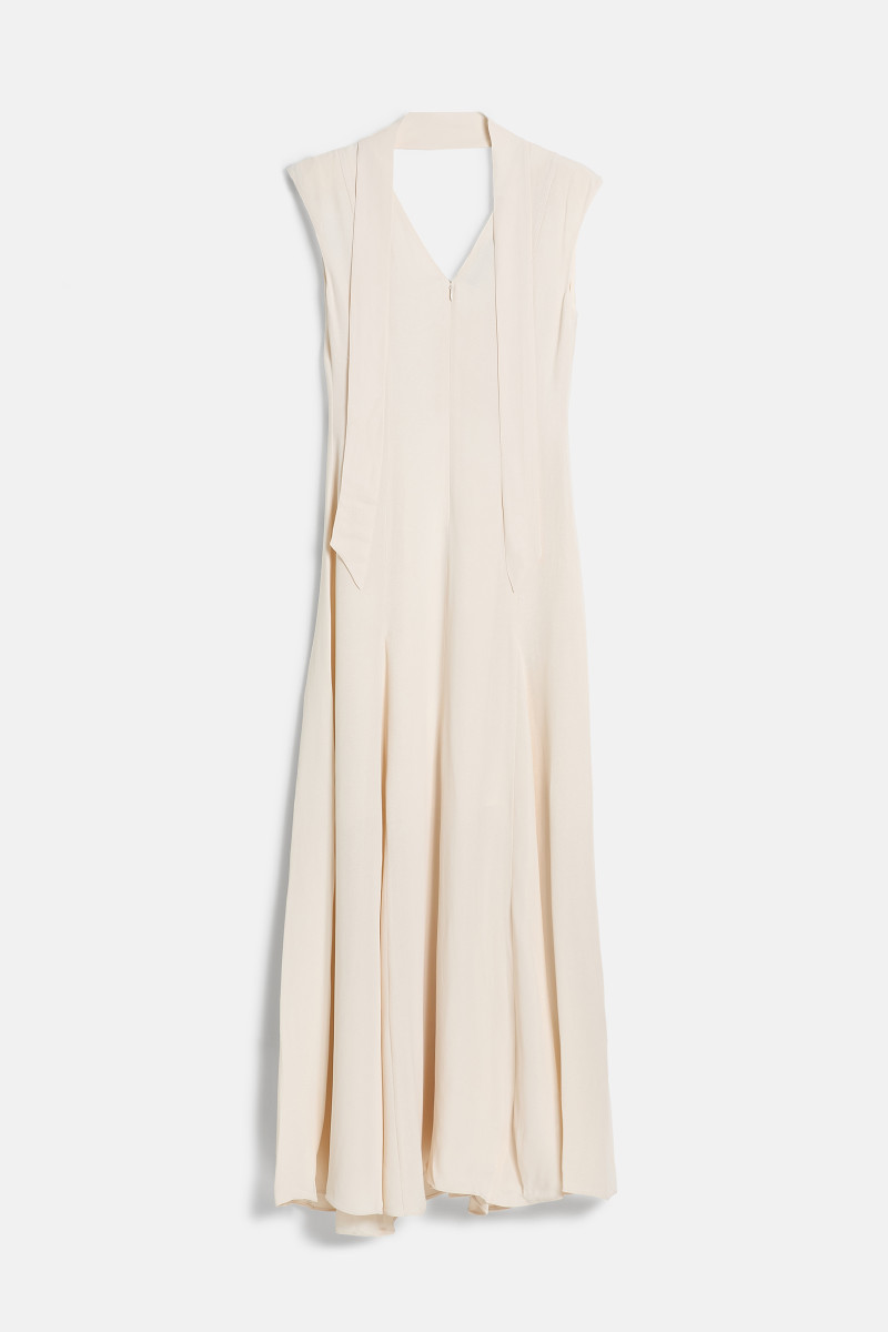 Dámske šaty bez rukávov v maxi dĺžke s hlbokým výstrihom do V. Rovný strih s romantickým volánovým detailom dodáva eleganciu a luxus do každého kroku. Skryté zapínanie v zadnej časti. Materiálové zloženie zaručuje dokonalú splývavosť, ľahkosť a maximálne príjemný pocit pri nosení. Šaty sú vďaka svojmu strihu veľmi decentné a zároveň pôsobivo ženské a originálne. Veľmi štýlový kúsok, ktorý bude ozdobou každého Vášho elegantného outfitu.