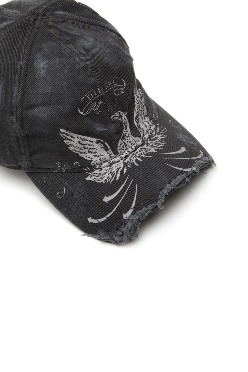 Pánska baseballová čiapka. Vyrobená z robustného a odolného bavlneného gabardénu. Doplnená detailom digitálnej potlače loga Phoenix a kontrastným prešívaním. Materiál bol špeciálne upravený a ošúchaný, čo modelu dodáva charakteristický poškodený vzhľad. Nastaviteľný opasok s kovovou prackou na reguláciu obvodu.