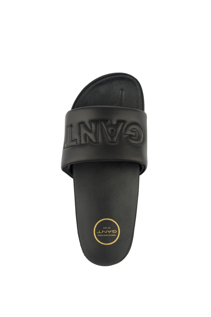 Dámske šľapky z hladkej kozej usne prémiovej kvality, ktoré Vás zaujmú svojím univerzálnym vzhľadom a originálnymi detailmi. Jednofarebný dizajn s otvorenou špičkou, voľnou pätou a prešívaným logom Gant na prednej strane dopĺňa anatomicky tvarovaná kožená stielka pre maximálne pohodlie počas nosenia. Dokonale štýlová obuv, ktorá bude ozdobou Vášho letného outfitu.