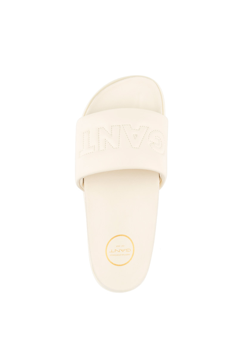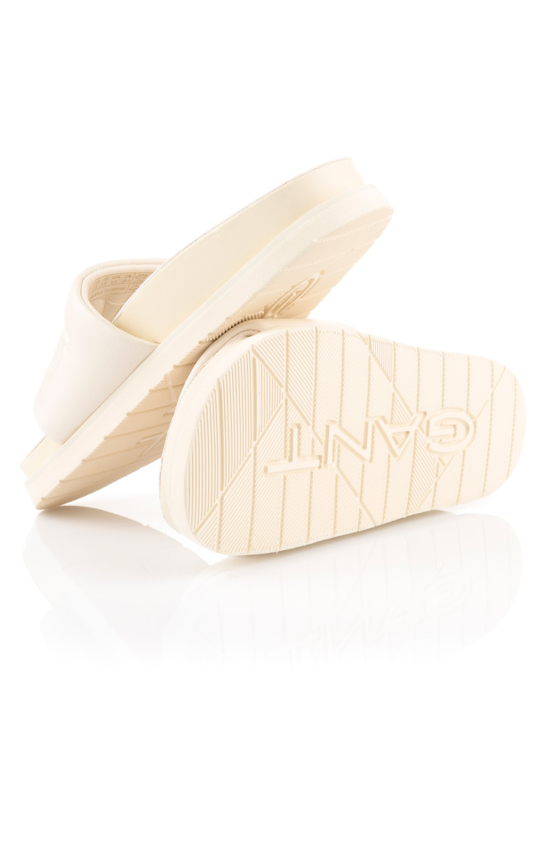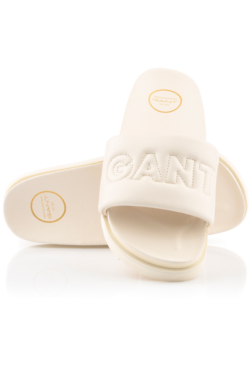 Dámske šľapky z hladkej kozej usne prémiovej kvality, ktoré Vás zaujmú svojím univerzálnym vzhľadom a originálnymi detailmi. Jednofarebný dizajn s otvorenou špičkou, voľnou pätou a prešívaným logom Gant na prednej strane dopĺňa anatomicky tvarovaná kožená stielka pre maximálne pohodlie počas nosenia. Dokonale štýlová obuv, ktorá bude ozdobou Vášho letného outfitu.