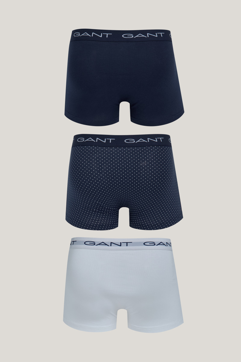 Pánske boxerky s klasickou dĺžkou priliehavej nohavičky. Perfektne sediaci strih dopĺňa pružná, na dotyk príjemne mäkká guma v páse, s kontrastným nápisom brandu. Na dotyk neobyčajne mäkký, hladký džersej je tvorený vysokým podielom dokonale priedušného bavlneného vlákna, ktoré v kombinácii s elastanom, predstavuje veľmi komfortnú, tvarovo stálu kombináciu materiálového zloženia. Výhodné balenie obsahuje dva kusy boxeriek v jednofarebnom dizajne a jeden kus spodnej bielizne s drobným bodkovaným vzorom.