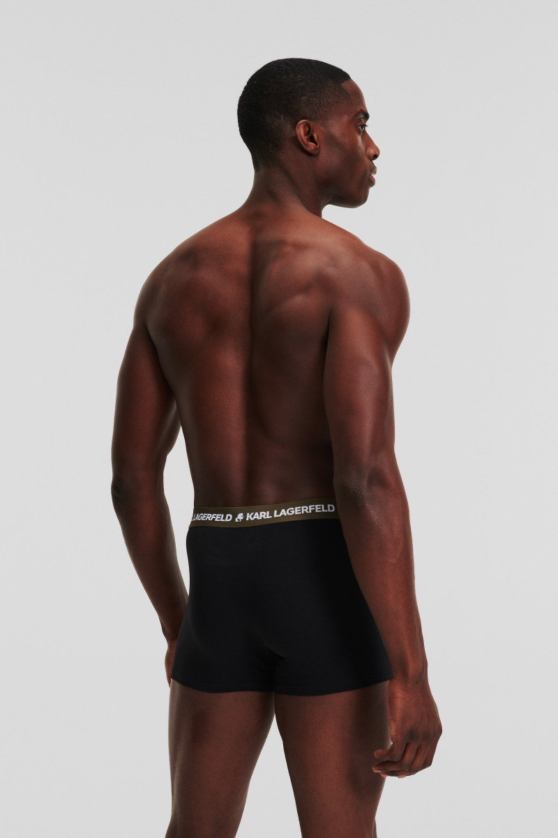 Pánska spodná bielizeň vo výhodnom balení. Klasický strih priliehavých trenírok s krátkou dĺžkou a pohodlnými švami na prednom diele dopĺňa kontrastný pružný pás, ktorý je ozdobený žakárovým logom KARL. Pružný úplet z organickej bavlny zaručuje perfektnú priedušnosť, tvarovú stálosť a maximálne príjemný pocit pri nosení. Balenie obsahuje troje čierne trenírky s rôznofarebnými odtieňmi v páse.