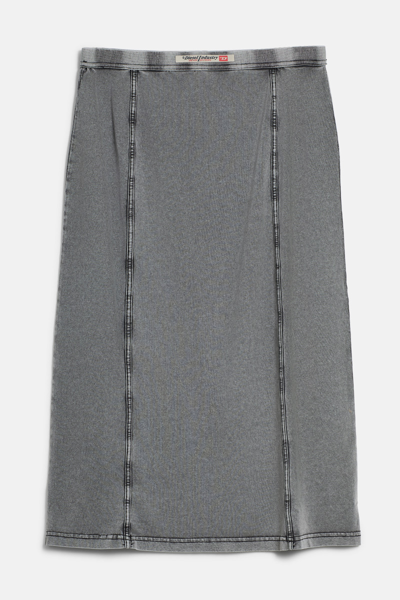 Dámska ceruzková sukňa. Úzky strih s dĺžkou midi pod kolená. Vyrobená z elastického bavlneného džerseja ošetreného acid wash pre efekt vyblednutej džínsoviny. Dizajn inšpirovaný spodným prádlom. Doplnená lemom pripomínajúcim podprsenku. Ozdobená ikonickým štítkom s logom Diesel na piatom vrecku na leme. Modelka má na sebe veľkosť S a meria 175 cm. Model má na sebe veľkosť S a meria 175 cm. Veľkosť zodpovedá bežnému značeniu, pri výbere si prosím vyberte svoju bežnú veľkosť.