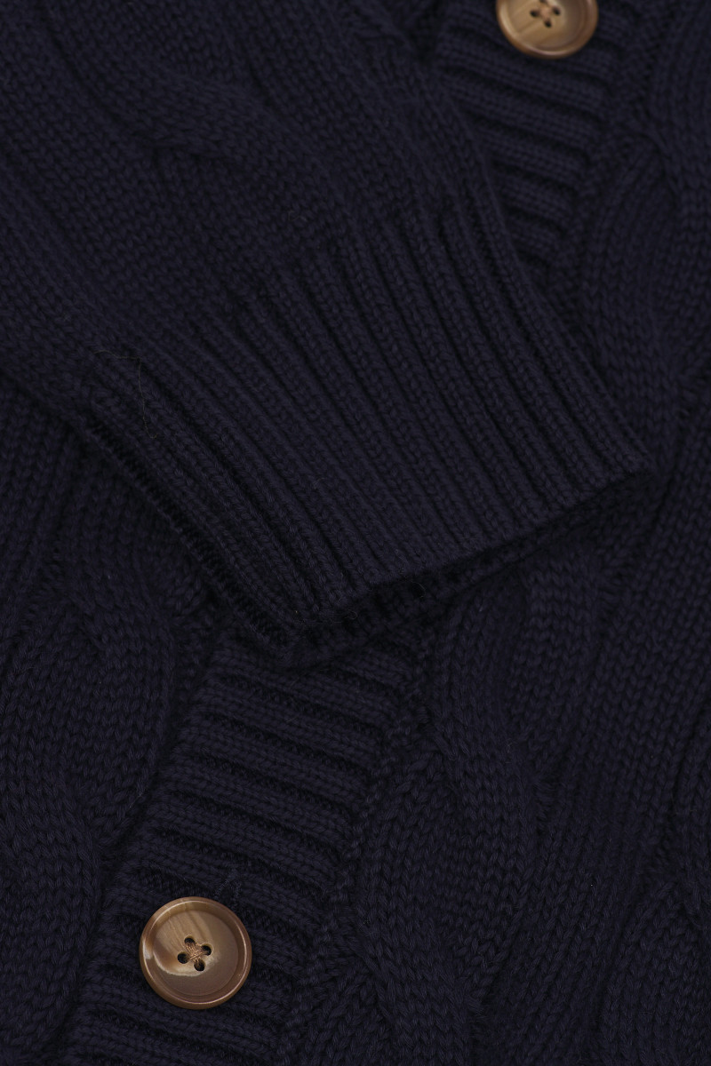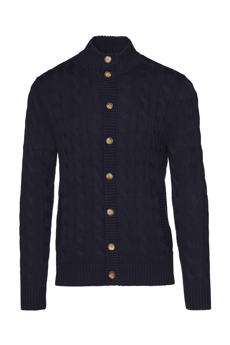 Pánsky celozapínací sveter so stojačikom mierne priliehavého strihu. Nadčasový vrkočový vzor, dve bočné vrecká a krásne kontrastné gombíky s logom brandu. Pružné rebrovanie v páse a na rukávoch. Materiálové zloženie je veľmi príjemné, mäkké a pohodlné na nosenie. Doplňte jednofarebnou alebo kockovanou košeľou, chino nohavicami a koženou členkovou obuvou pre voľnočasový trendy look.