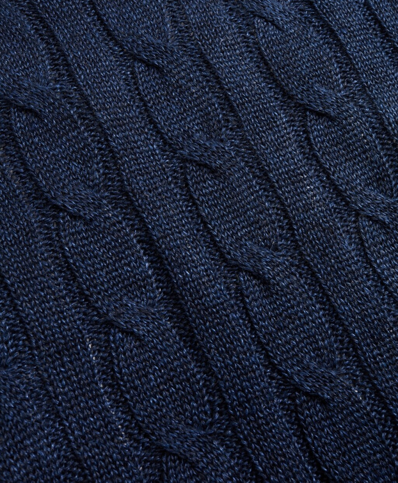SVETER BROOKS BROTHERS SWT ML LINEN CLASSIC CABLE CREWNECK NAVY BLUE MARL NO COLOR