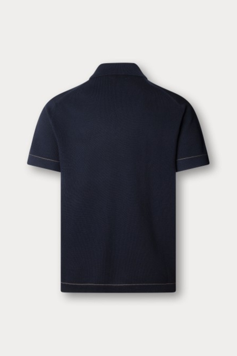 SVETER HACKETT LONDON TEXTURED KNIT POLO DARK DENIM BLUE