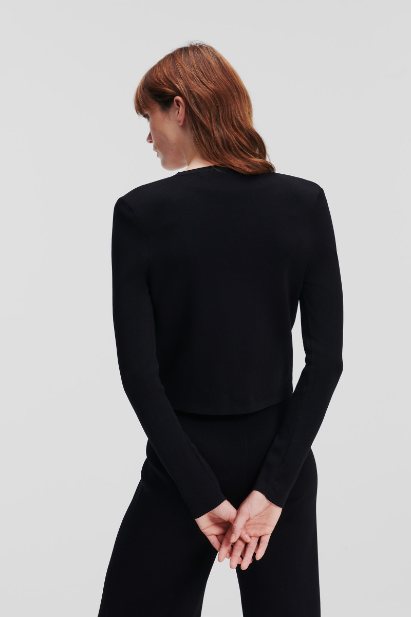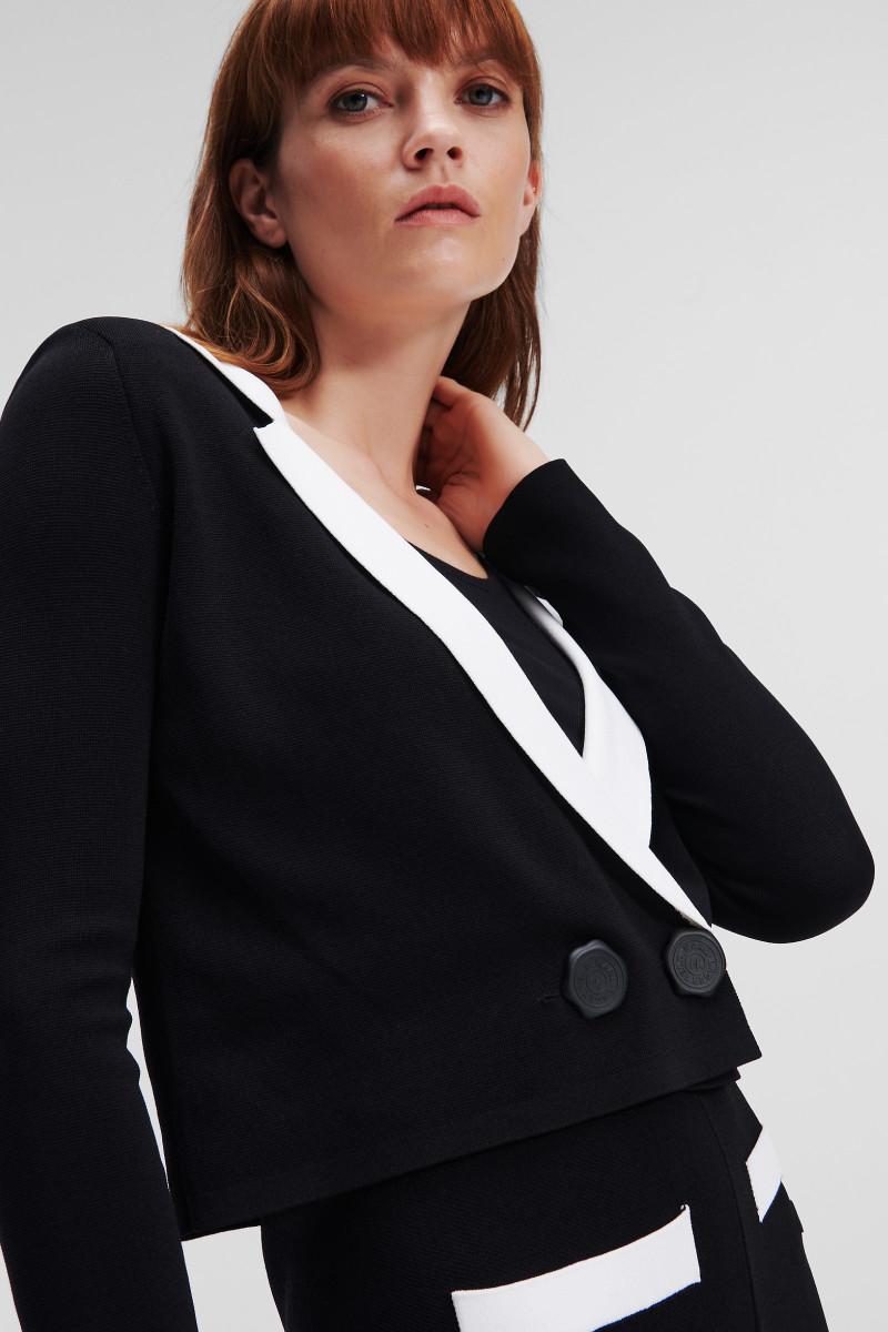 SVETER KARL LAGERFELD CROPPED KNIT CARDIGAN BLACK/WHITE