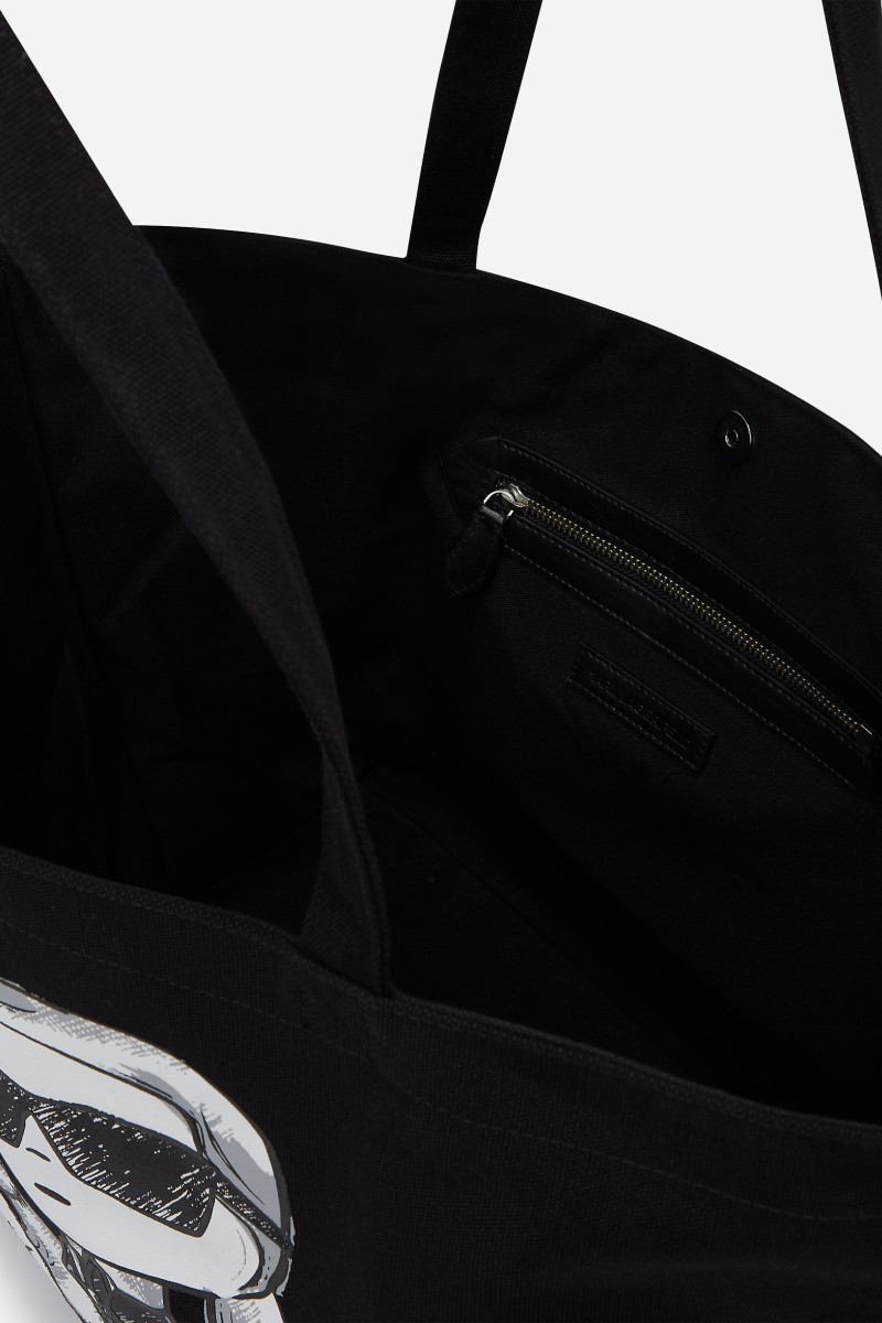 Dámska taška z čiastočne recyklovaného bavlneného materiálu. Športovo-elegantný dizajn s dvoma pevnými rúčkami vhodnými na nosenie v ruke aj cez rameno dopĺňa zapínanie na magnetický gombík. Tašku zdobí originálna kresba IKON Karl a Choupette na prednej strane. Priestranný interiér je vybavený plochým vreckom so zipsom. Dokonale štýlový doplnok Vášho letného outfitu.