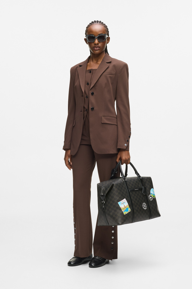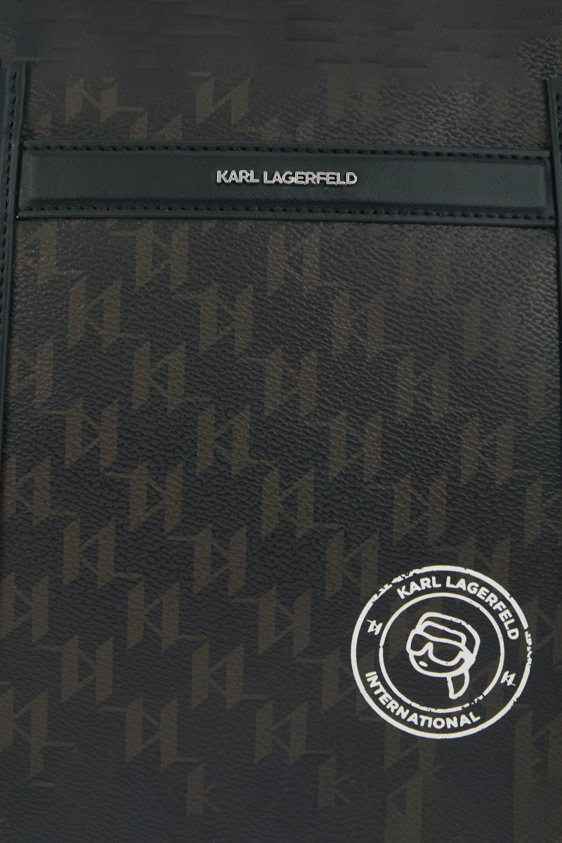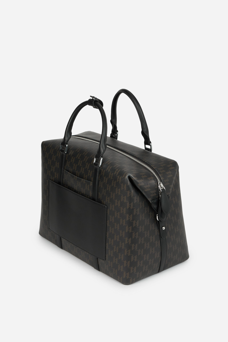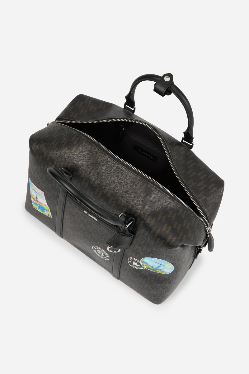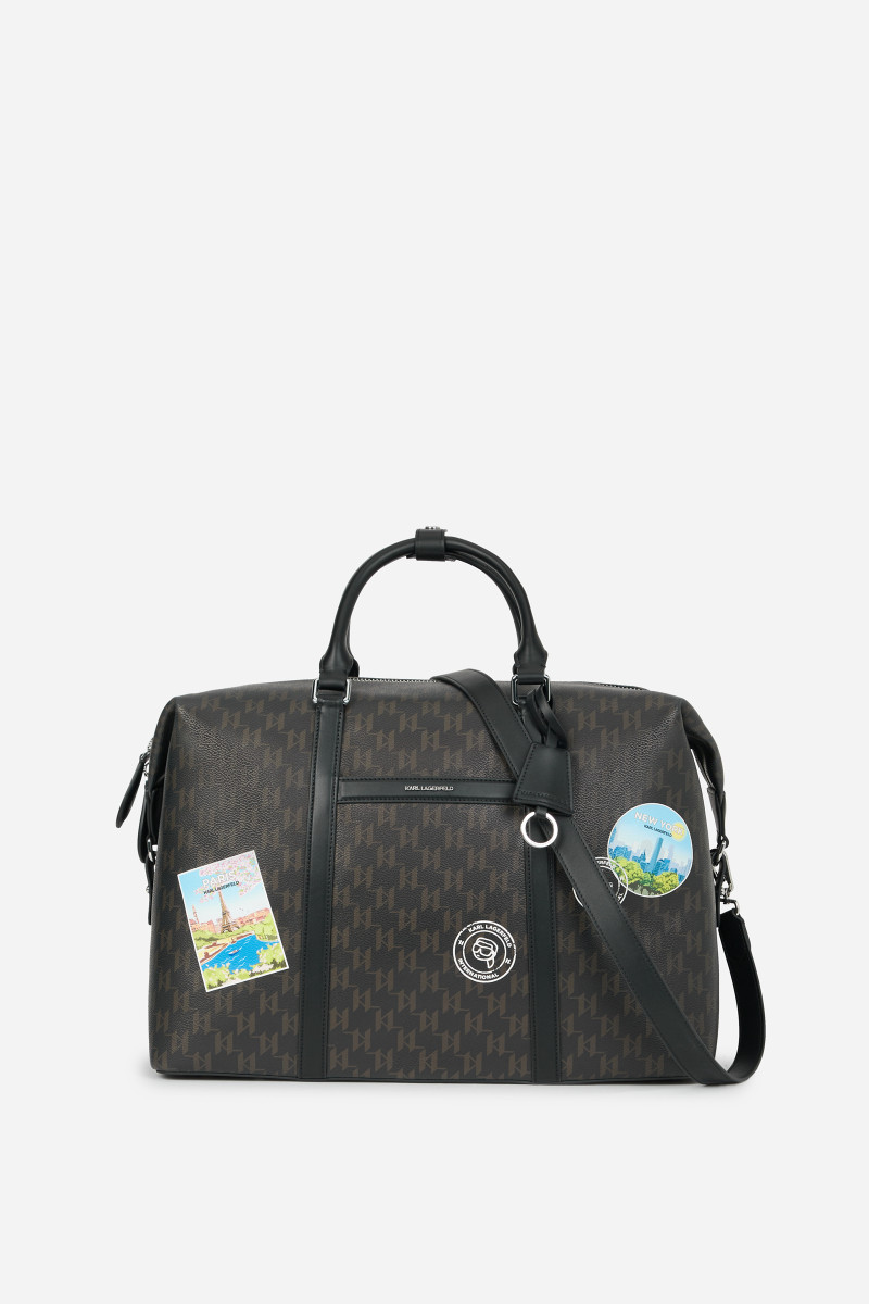 Praktická cestovná taška nadčasového celoplošného Karl Monogram dizajnu s cestovateľským motívom vytlačeným na prednej strane. Taška disponuje dvoma pevnými rúčkami pre prenášanie v ruke a odnímateľným popruhom cez rameno s jednoducho nastaviteľnou dĺžkou. Odolné a veľmi pevné, na dotyk však príjemne mäkké materiálové zloženie povrchovej časti tvorí štruktúrovaná technická koža prémiového pôvodu, ktorú dopĺňa priestranný, prakticky riešený vnútorný priestor vystlaný ľahkou bavlnenou tkaninou s postranným vreckom so zapínaním na zips. Sofistikovaný doplnok, ktorý dodá každému stylingu okázalý šmrnc.