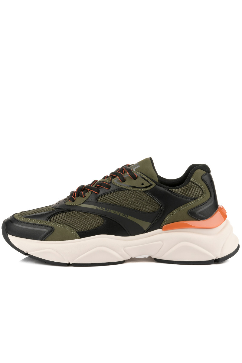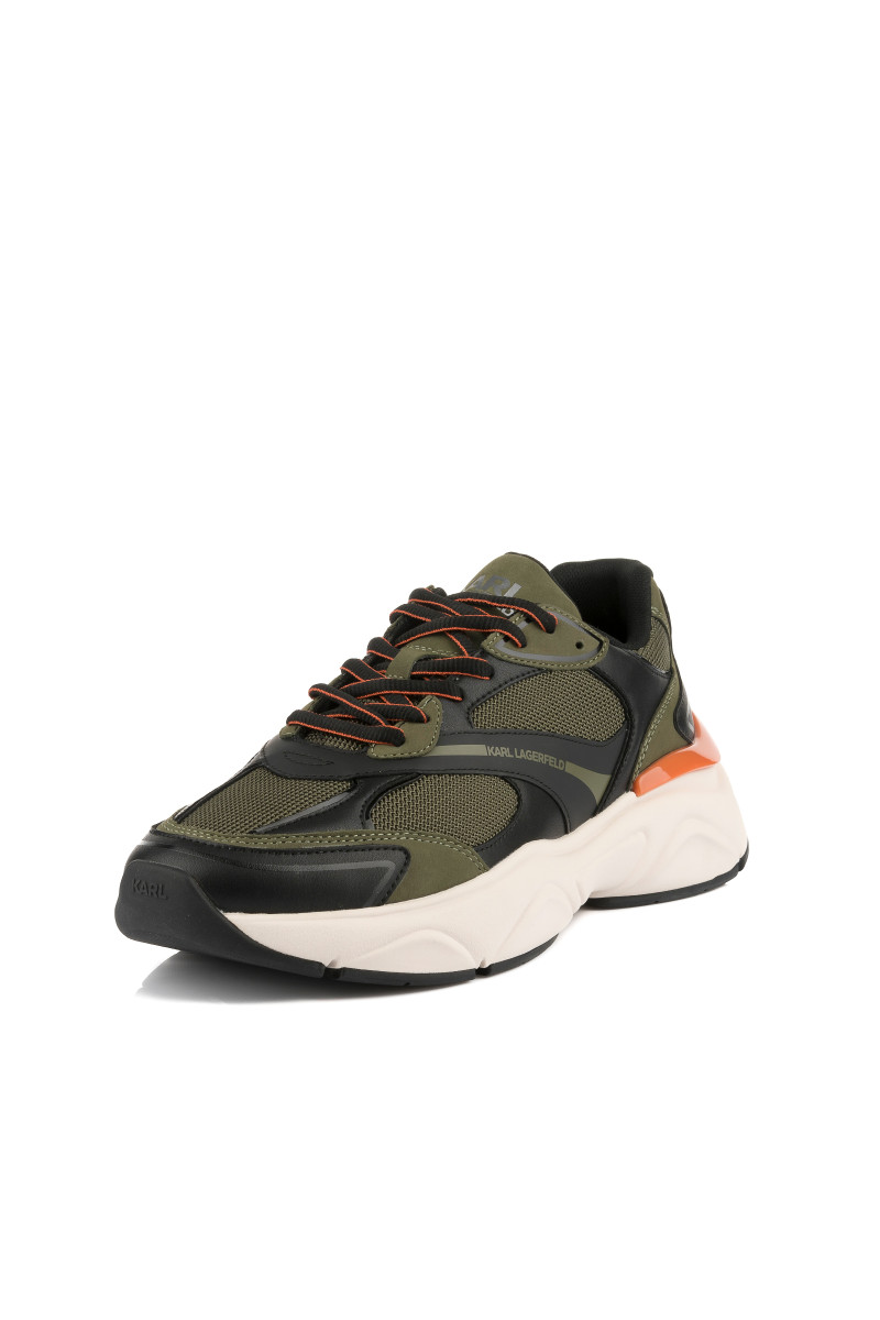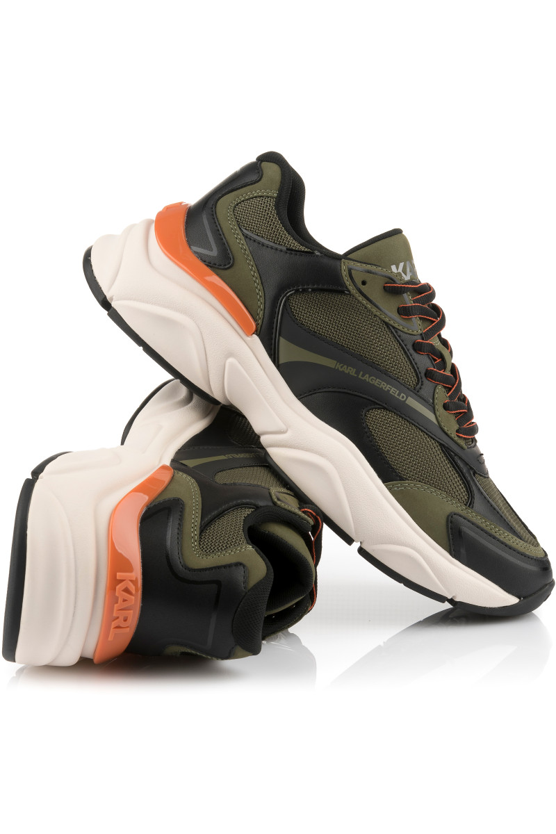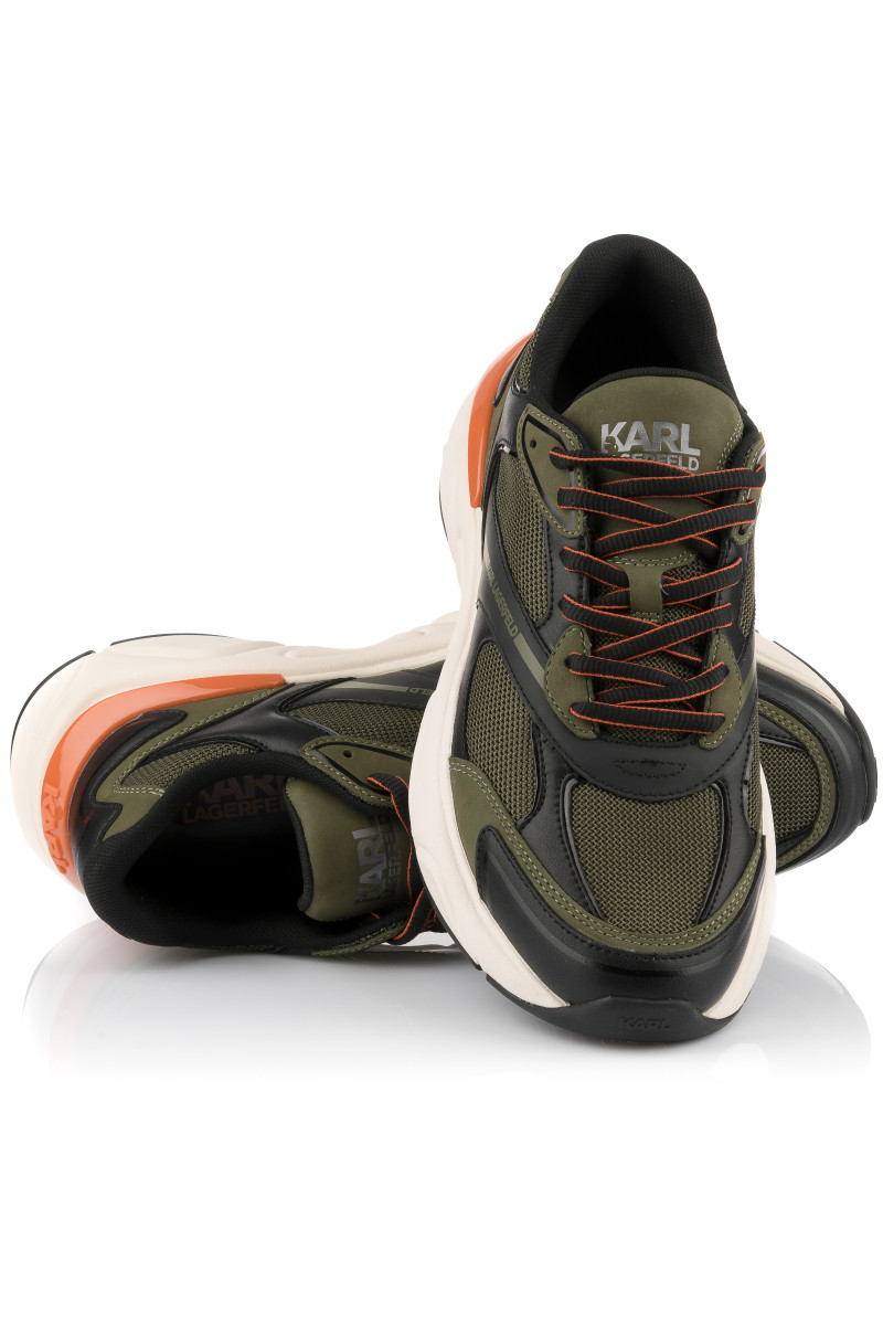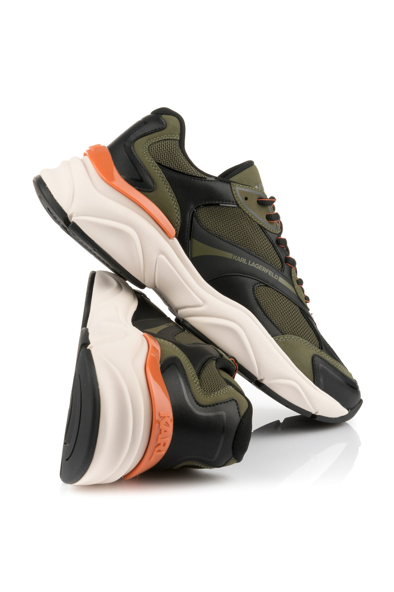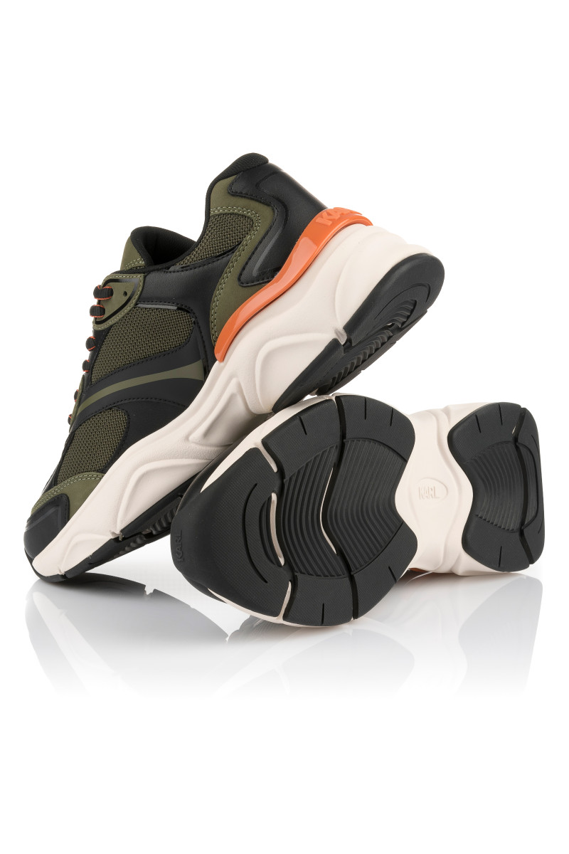 Pánske tenisky z kombinovaného materiálu, ktoré si Vás získajú svojím originálnym vzhľadom a maximálnym komfortom počas nosenia. Štruktúrovaný povrch s prepracovanými detailmi a logom KARL umiestneným na vonkajšej strane a na jazyku dopĺňa vyššia tvarovaná podrážka z ľahkého a flexibilného syntetického materiálu. Nezameniteľne štýlová obuv, ktorá skvele doladí Váš ležérny outfit.