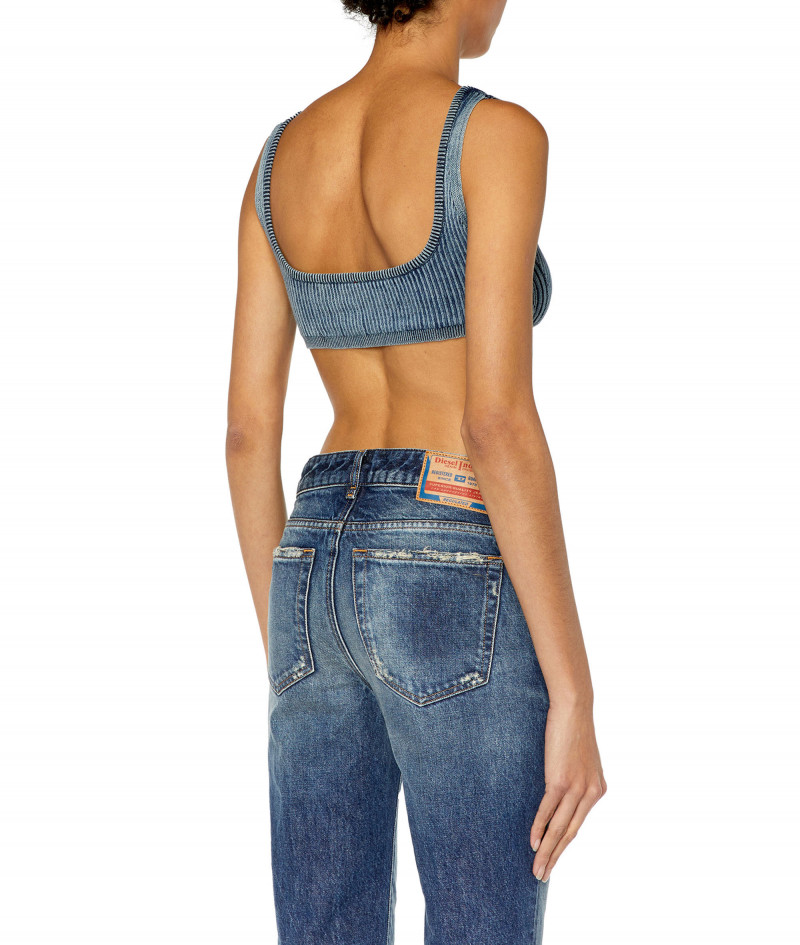 Dámsky crop top. Úzky sediaci strih. Vyrobený z rebrovaného úpletu indigovej priadze. Z rubovej strany doplnený Lycrou pre špeciálny vlnitý efekt. Úprava stonewash dodáva jemný vintage vzhľad. Jazdec predného zipsu zdobí oválne logo písmena ,,D". Modelka má na sebe veľkosť S a meria 175 cm. Veľkosť zodpovedá bežnému značeniu, pri výbere zvoľte svoju obvyklú veľkosť.