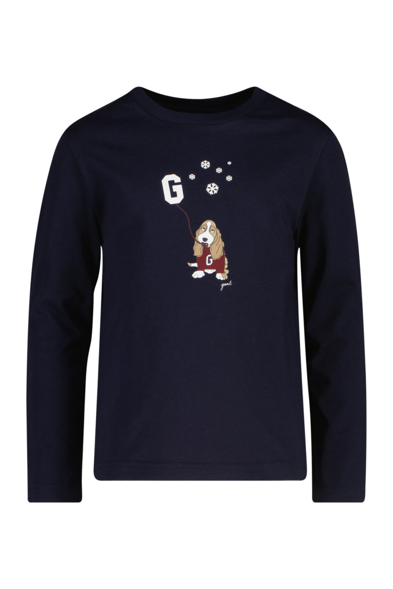 Detské tričko z mimoriadne mäkkého džerseja, ktoré zdobí na hrudi originálna sezónna grafika s vkusne zakomponovaným monogramom a nápisom brandu. Rovný, veľmi pohodlný strih s dlhým rukávom dopĺňa okrúhly výstrih. Kvalitné materiálové zloženie je tvorené bavlneným vláknom organického pôvodu, ktoré je na dotyk zamatovo hebké, počas nosenia dokonale priedušné, ale aj príjemne hrejivé. Vysoko komfortný kúsok nápaditého vzhľadu vhodný na každodenné nosenie.