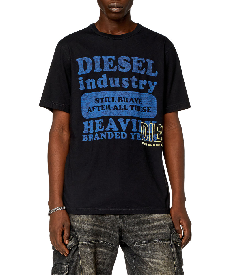 Pánske tričko s krátkym rukávom a okrúhlym výstrihom. Voľný strih je zdobený grafickou potlačou Diesel Industry na prednej strane. Pružný lem pri krku. Prémiový bavlnený džersej je veľmi príjemný na dotyk, pri nosení dokonale priedušný a vďaka svojej poddajnosti a flexibilite aj veľmi pohodlný. Kvalitné materiálové zloženie je napriek nenáročnej údržbe tvarovo aj farebne stále. Veľkosť zodpovedá bežnému značeniu, pri výbere zvoľte svoju obvyklú veľkosť. Model má na sebe veľkosť L a meria 182 cm.