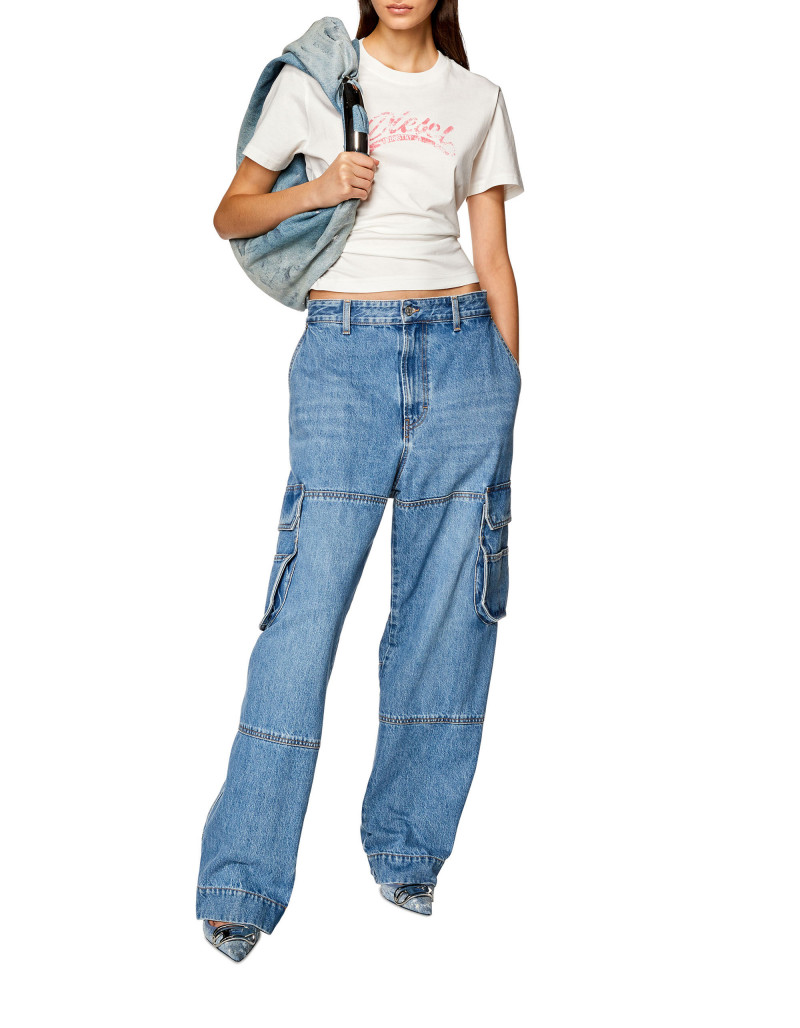 Dámske tričko s krátkym rukávom. Okrúhly výstrih pri krku. Regular rovný strih. Ušité z bavlneného džerseja. Na hrudi zdobené oblúkovým nápisom Diesel v retro štýle. Modelka má na sebe veľkosť S a meria 177 cm. Veľkosť zodpovedá bežnému značeniu, pri výbere zvoľte svoje obvyklé číslo.