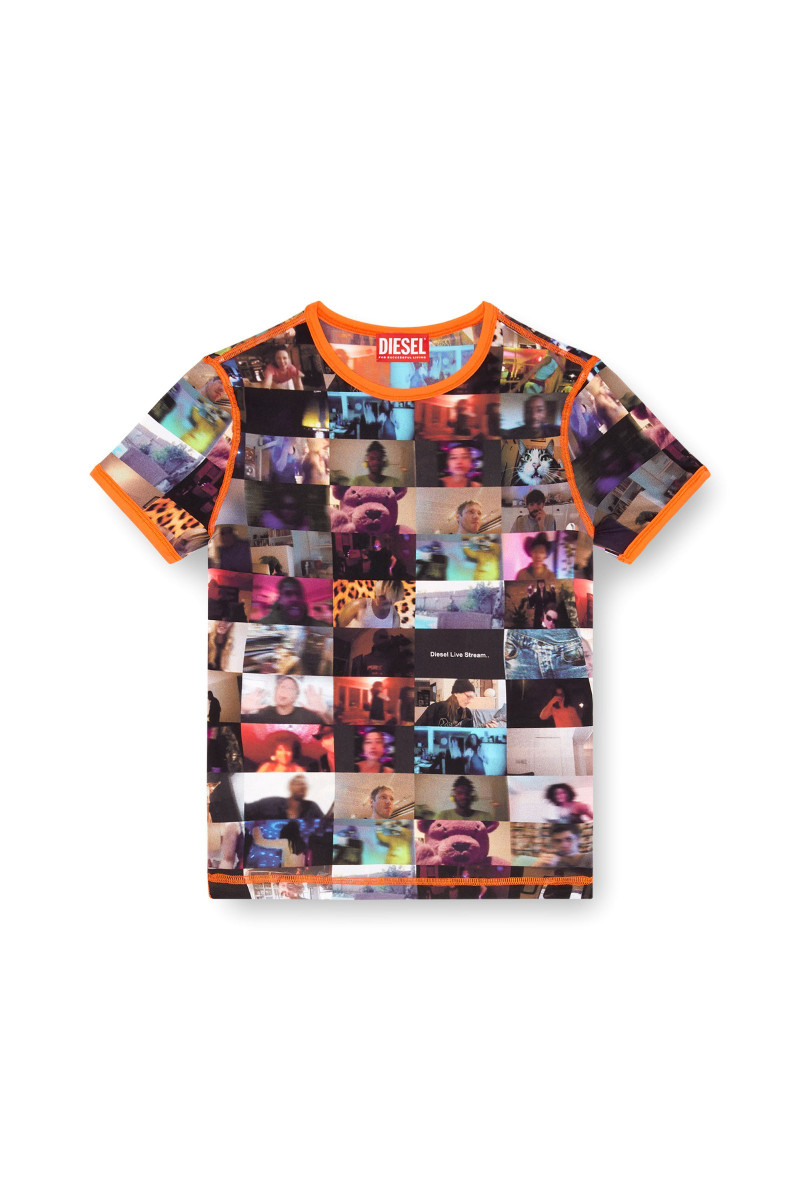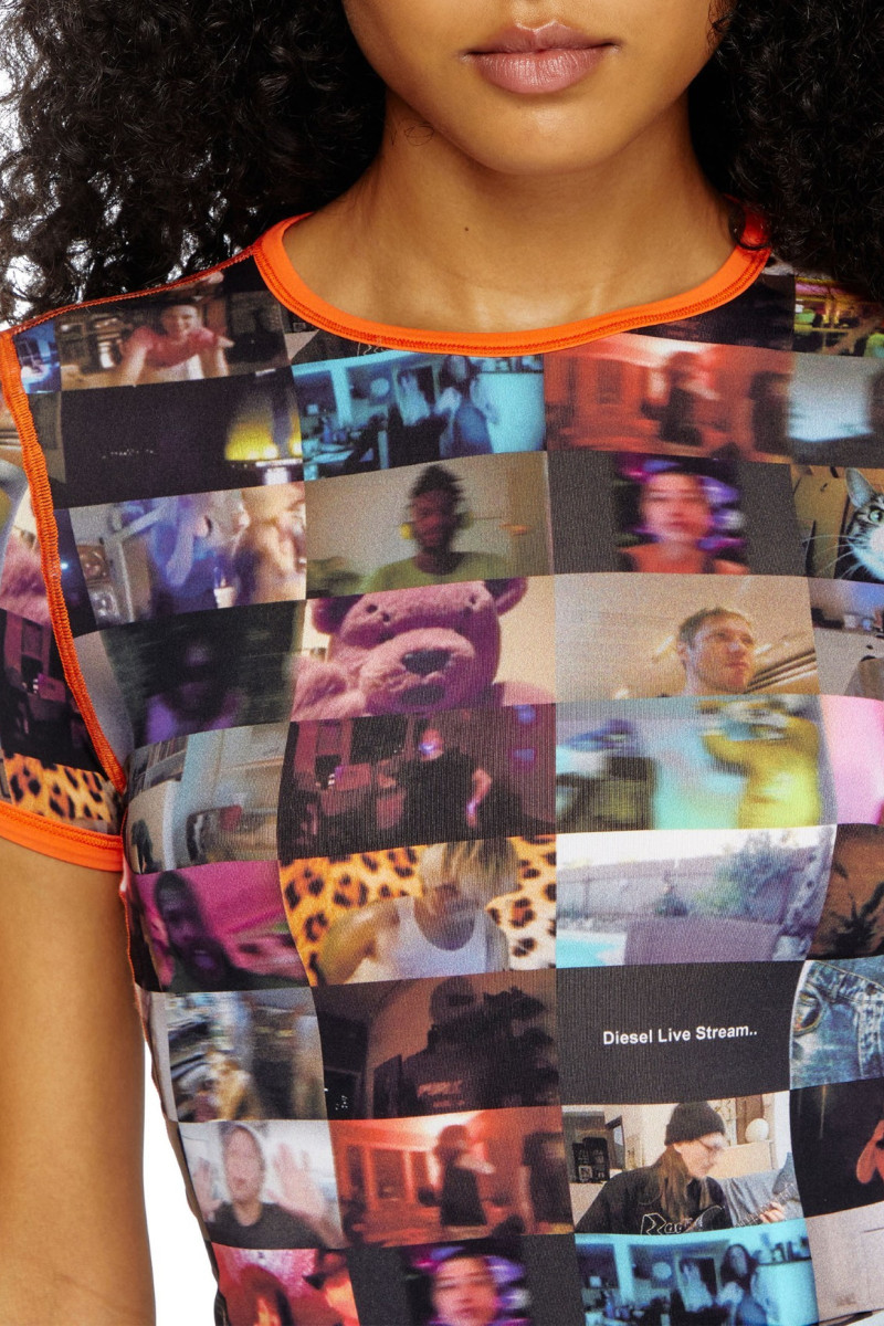 Dámske tričko s krátkymi rukávmi a okrúhlym výstrihom. Priliehavý, skrátený strih je ozdobený kontrastným lemovaním a pestrou grafikou špeciálneho videohovoru značky Diesel. Vyrobené zo strečovej látky, ktorá je dokonale prispôsobivá a príjemná na nosenie ako druhá koža. Skvele padnúci kúsok, ktorý štýlovo doladí Váš outfit. Modelka má na sebe veľkosť S a meria 175 cm. Zodpovedá veľkosti, vezmite si svoju normálnu veľkosť.