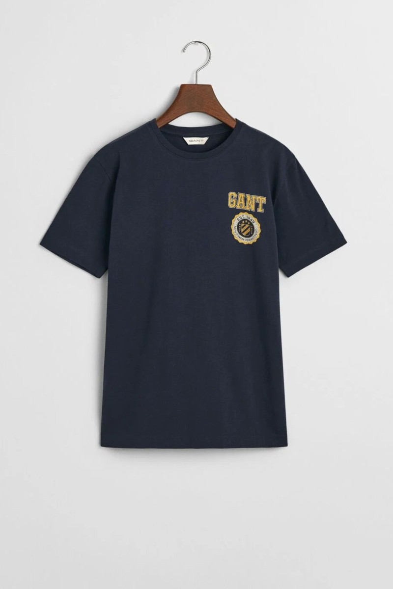 Detské tričko s okrúhlym výstrihom a krátkym rukávom. Rovný strih s rebrovaným lemom pri krku dopĺňa kontrastná potlač loga Gant umiestnená na hrudi. 100% bavlna prémiovej kvality zaručuje dokonalú priedušnosť, maximálny komfort pri nosení a jednoduchú údržbu. Dokonale kombinovateľný a praktický kúsok vhodný na každodenné nosenie.