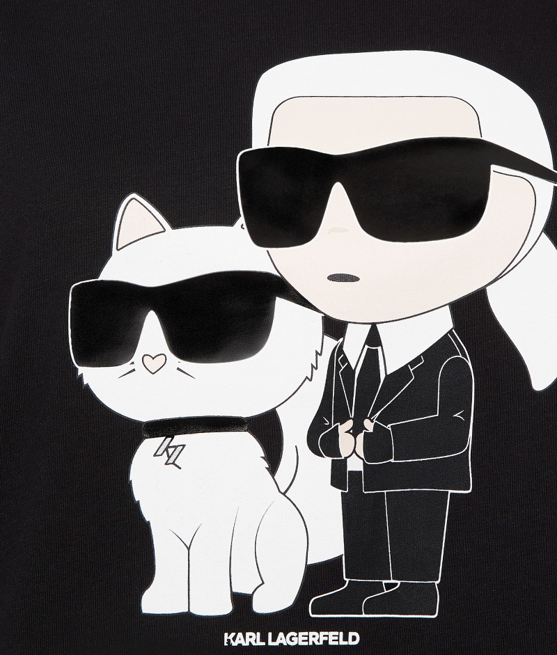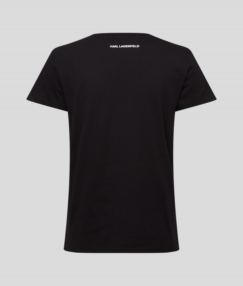 Dámske tričko s krátkym rukávom a okrúhlym výstrihom, ktoré je ozdobené novou generáciou grafiky Ikonik Karl a Choupette, inšpirovaným radom zberateľských kúskov NFT. Rovný strih s rebrovaným lemom pri krku dopĺňa kontrastnú potlač loga KARL na zadnom diele. Materiálové zloženie so 100% podielom organickej bavlny zaručuje dokonalú mäkkosť, priedušnosť a príjemný pocit pri nosení. Nezameniteľne štýlový kúsok, ktorý bude ozdobou Vášho neformálneho outfitu.