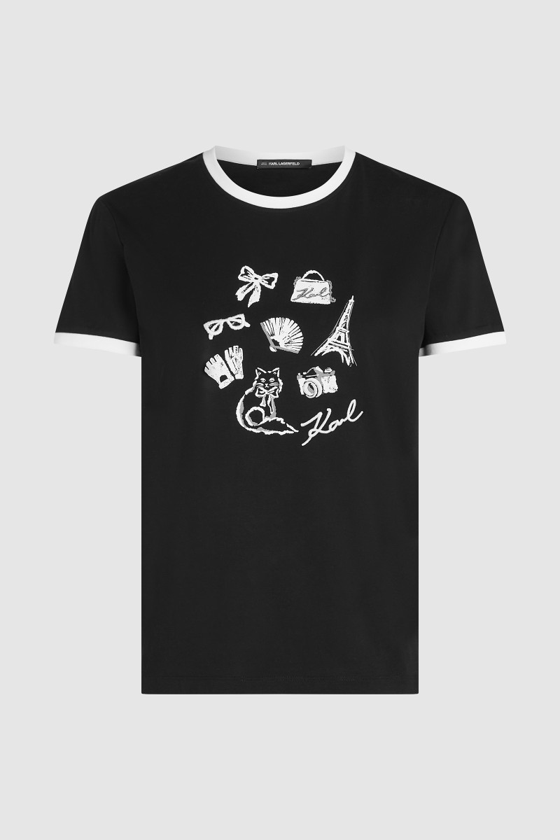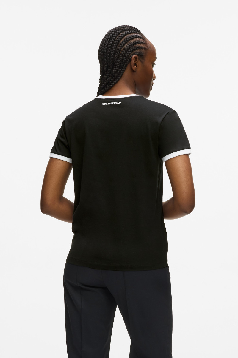Dámske tričko klasického, rovného strihu s krátkym rukávom a s okrúhlym výstrihom. Zdobené kontrastným lemovaním na rukávoch a okolo krku a umeleckým dielom, ktoré predstavujú hravé detaily emblému, ktoré dodávajú tomuto tričku svieži grafický nádych. Materiálové zloženie je tvorené 100% bavlneným organickým vláknom prémiovej kvality, ktoré je príjemne mäkké na dotyk, pri nosení priedušné a vďaka svojej poddajnosti a flexibilite aj veľmi pohodlné. Kvalitný džersej je zárukou tvarovej aj farebnej stálosti. Štýlový základ voľnočasového stylingu.