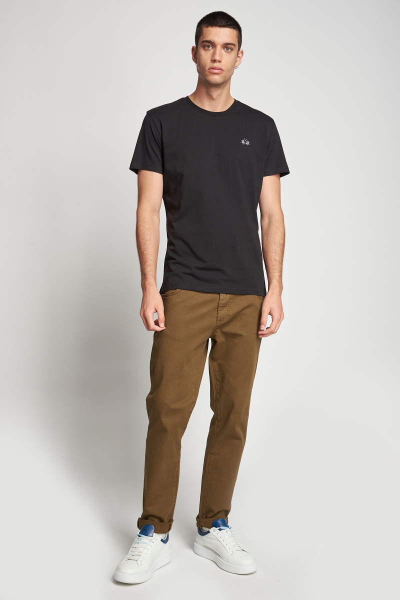 Pánske tričko klasického strihu s krátkymi rukávmi a okrúhlym výstrihom. Kontrastne vyšité La Martina logo na hrudi. Ľahký a príjemne mäkký bavlnený džersej prémiovej kvality je dokonale priedušný. Poddajnosť a flexibilita materiálového zloženia sú zárukou vysoko komfortného pocitu pri nosení. Praktický, všestranne kombinovateľný kúsok, ktorý bude perfektne vyzerať v outfite s vychádzkovým sakom a plátennými nohavicami, ale aj rozopínacou mikinou a športovými šortkami.