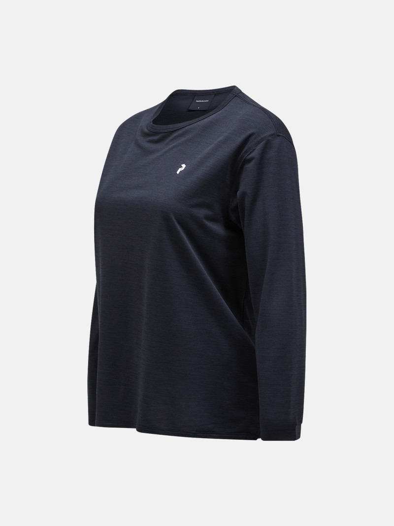 Dámske tričko s okrúhlym výstrihom a dlhými rukávmi. Voľný strih s jemne predĺženou zadnou časťou, reflexná brand potlač na hrudi a na rukáve. Materiálové zloženie z veľmi ľahkého a priedušného materiálu s 3D pletenou štruktúrou, ktorý bol vyrobený z recyklovaných, syntetických vlákien a celkové spracovanie zaručujú maximálne pohodlie a príjemný pocit na tele, bez lepenia sa na telo, počas náročného športového tréningu. Dokonale štýlový kúsok pre váš aktívny životný štýl na akúkoľvek aktivitu.