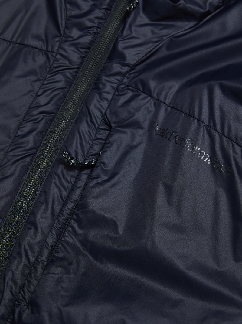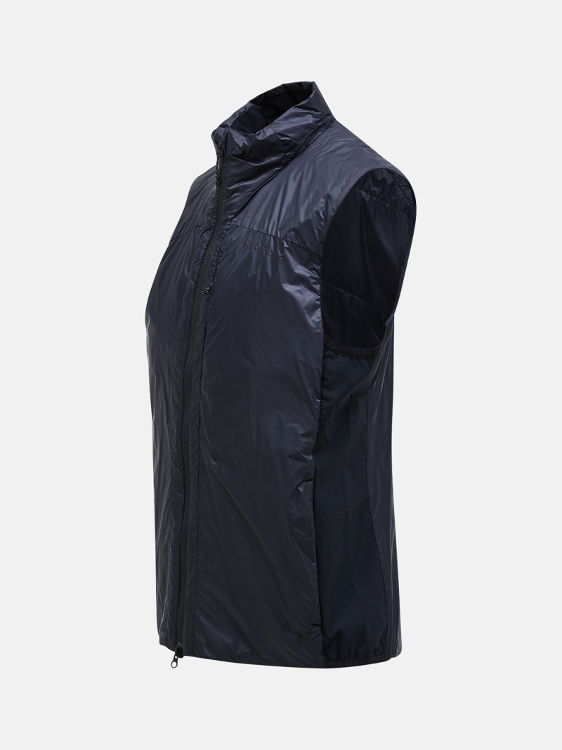 Pánska, ľahká vesta. Rovný strih, celá predná časť s dvojcestným zipsom, elastická väzba na spodnom leme, nízko strihaný golier. Vrecká na ruky na zips, náprsné vrecko na zips, vnútorné sieťované vrecko, vnútorné vrecko na zips potlač Peak Performance na hrudi. Bočné panely z ľahkého softshellu pre priedušnosť a pohyblivosť. Odolná, vodoodpudivá úprava bez PFC. Vodoodpudivá, odolná voči vetru, rýchloschnúca, ľahká, kompaktná, pružná, zateplená recyklovanou izoláciou PrimaLoft® Silver, tak, aby mapovala telo a rýchlo zbaliteľná. Bola vyvinutá v úzkej spolupráci so športovcami a horskými vodcami. Vesta je taká univerzálna, že ju môžete nosiť ako vrchnú, izolačnú alebo istiacu vrstvu a oceníte ju hlavne počas vysoko intenzívnej aktivity.