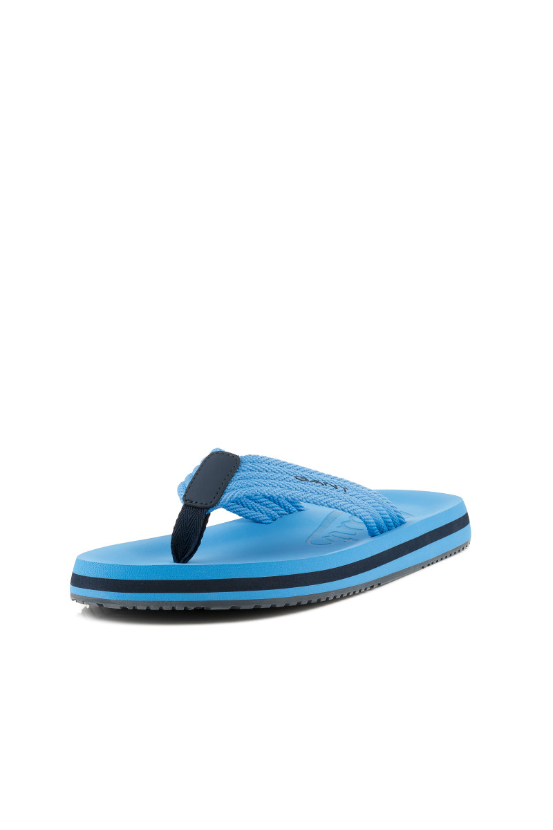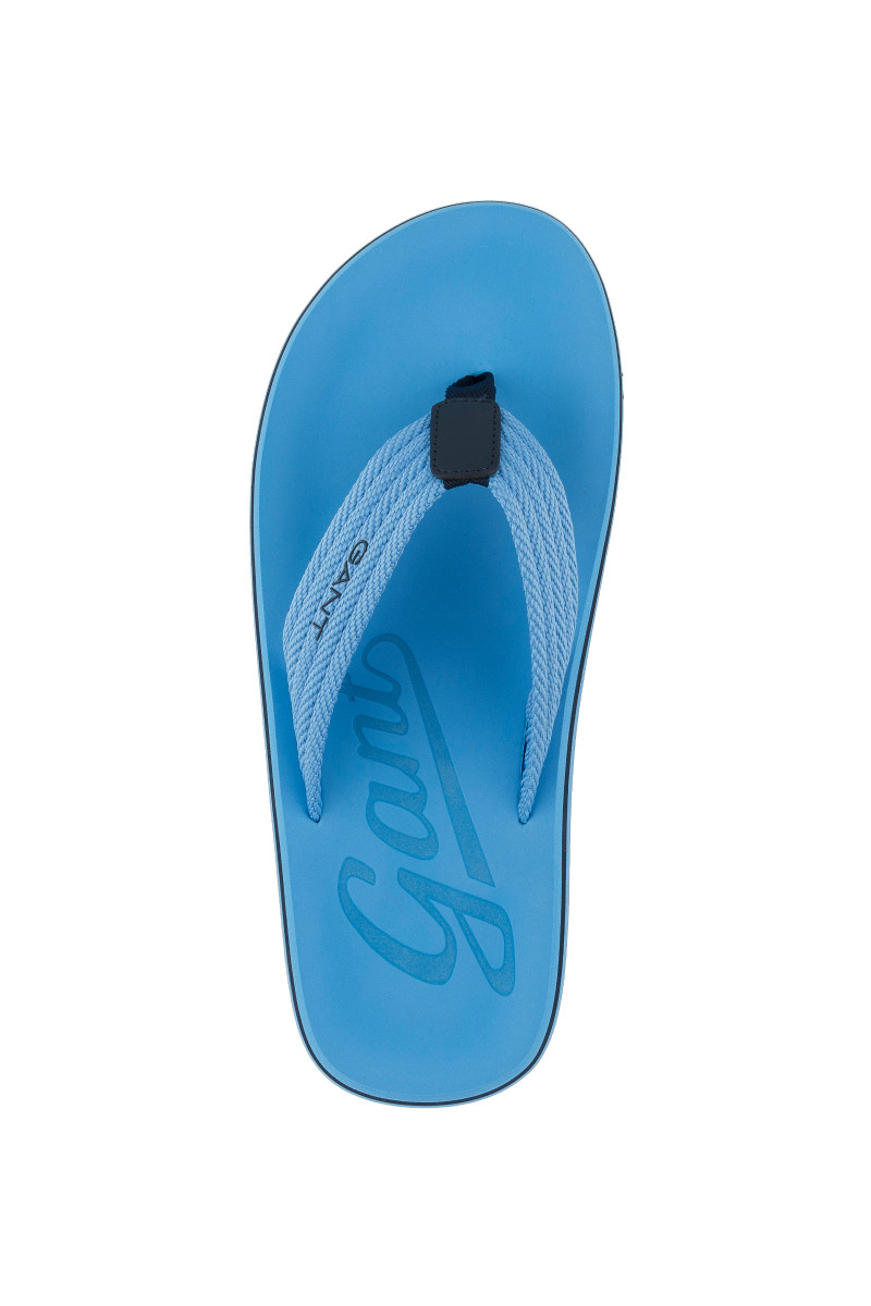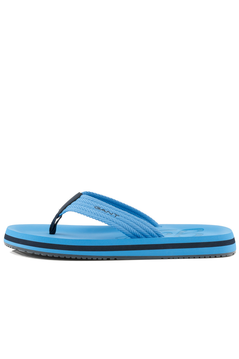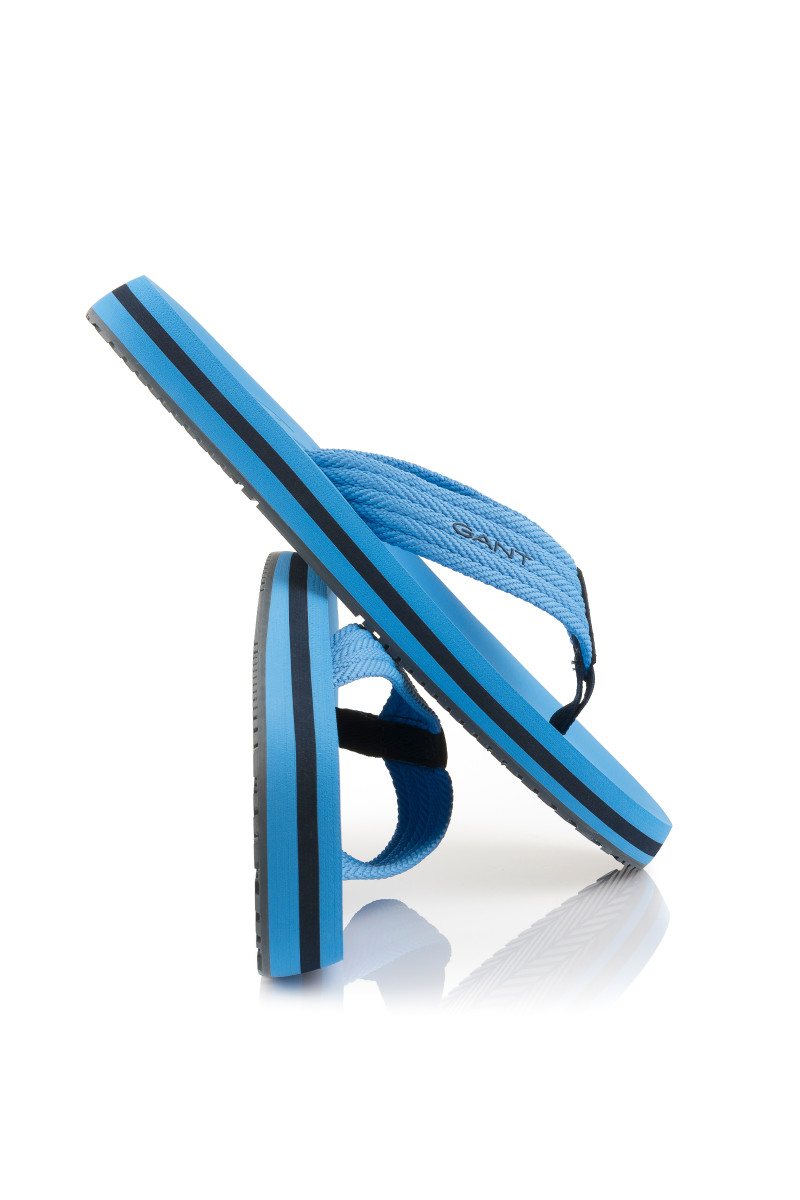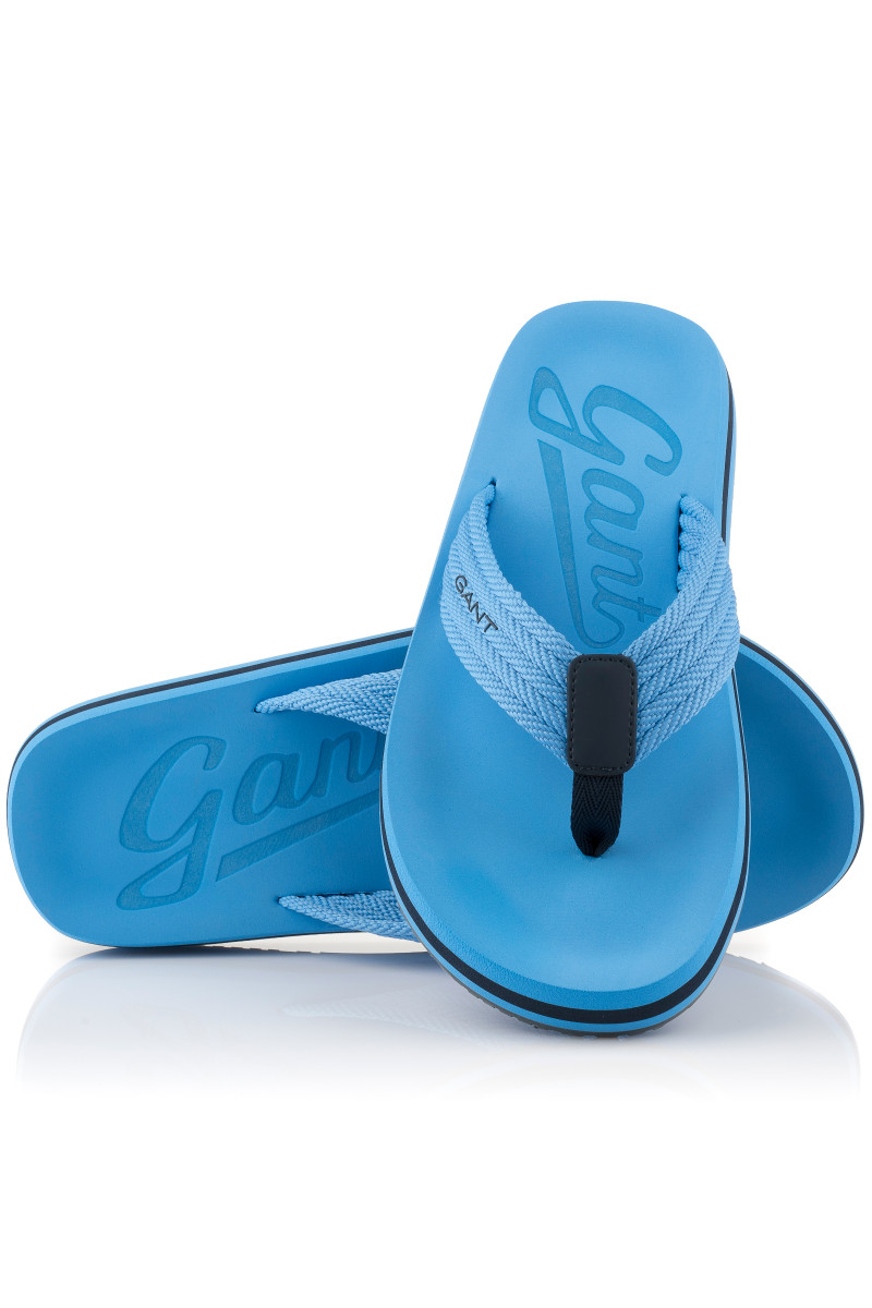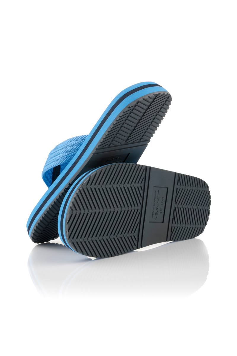 Pánske žabky. Vrchná, jemne textúrovaná časť topánky je tvorená odolnou, avšak príjemne mäkkou pleteninou, ktorá je medzi prstami spojená detailom z hladkej usne. Samozrejmosťou je nápis brandu na vonkajšej strane, ktorý elegantne dopĺňa kontrastný branding umiestnený pod pätou v neobyčajne mäkkej stielke. Ľahká, pri chôdzi dokonale prispôsobivá podrážka z kvalitného gumy je zárukou pohodlia. Všestranne kombinovateľný typ voľnočasovej obuvi, ktorá neodmysliteľne patrí k letnému, nielen plážovému stylingu.