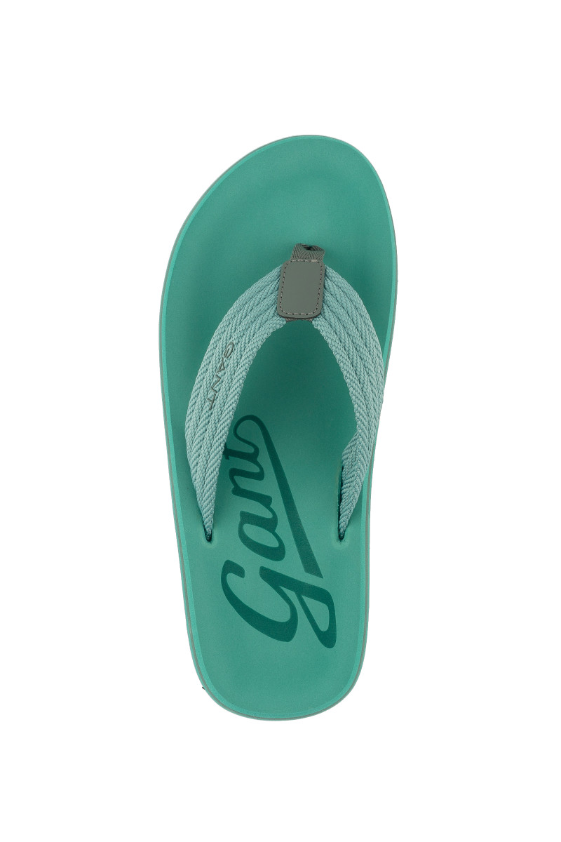 Pánske žabky. Vrchná, jemne textúrovaná časť topánky je tvorená odolnou, avšak príjemne mäkkou pleteninou, ktorá je medzi prstami spojená detailom z hladkej usne. Samozrejmosťou je nápis brandu na vonkajšej strane, ktorý elegantne dopĺňa kontrastný branding umiestnený pod pätou v neobyčajne mäkkej stielke. Ľahká, pri chôdzi dokonale prispôsobivá podrážka z kvalitného gumy je zárukou pohodlia. Všestranne kombinovateľný typ voľnočasovej obuvi, ktorá neodmysliteľne patrí k letnému, nielen plážovému stylingu.